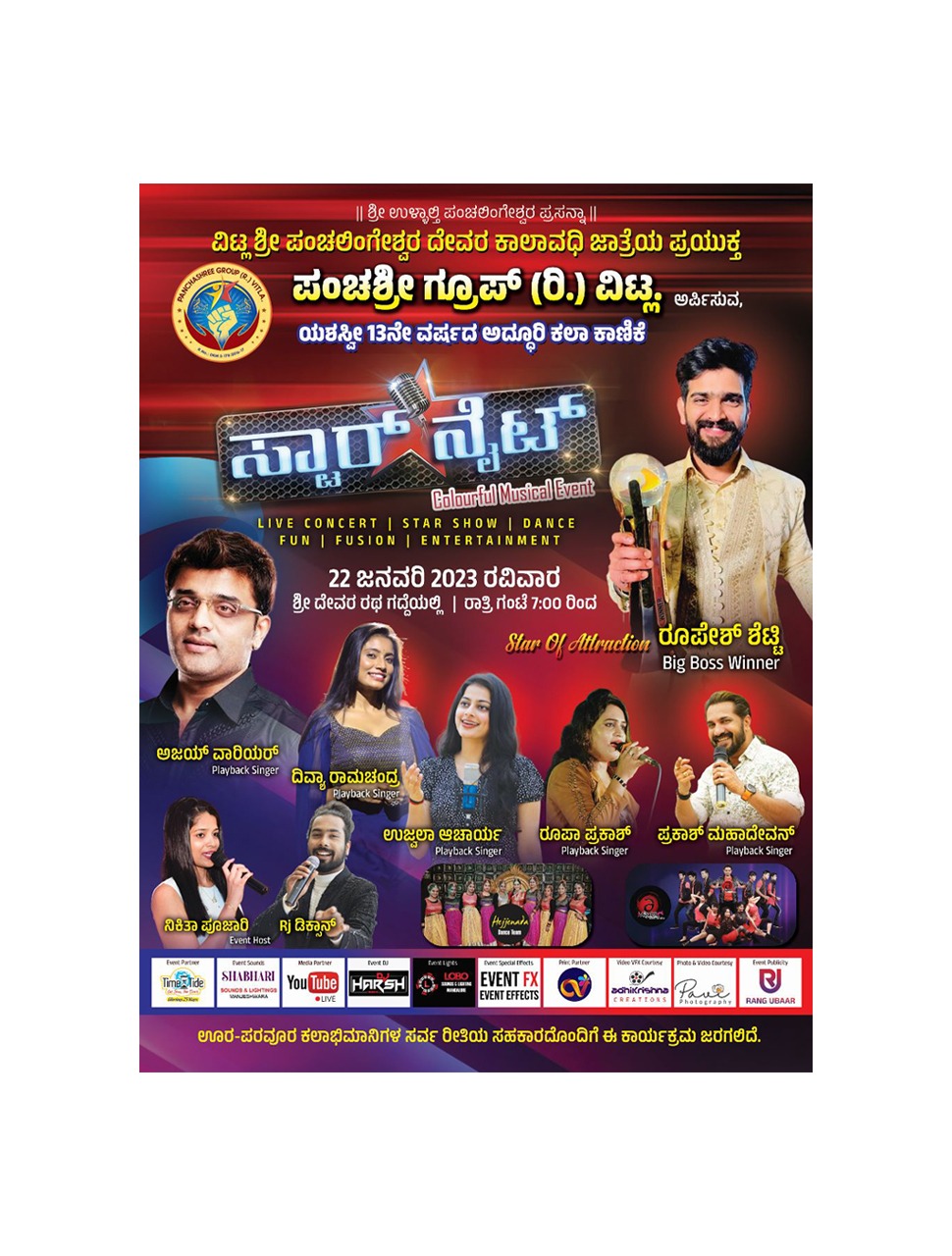 ಕಾರ್ಯಕ್ರಮದಲ್ಲಿ ಸ್ಟಾರ್ ಆಫ್ ಅಟ್ರಾಕ್ಷನ್ ಆಗಿ ಬಿಗ್ ಬಾಸ್ ವಿನ್ನರ್, ಕರಾವಳಿಯ ರಾಕ್ ಸ್ಟಾರ್ ರೂಪೇಶ್ ಶೆಟ್ಟಿ ರವರು ಆಗಮಿಸಲಿದ್ದಾರೆ.