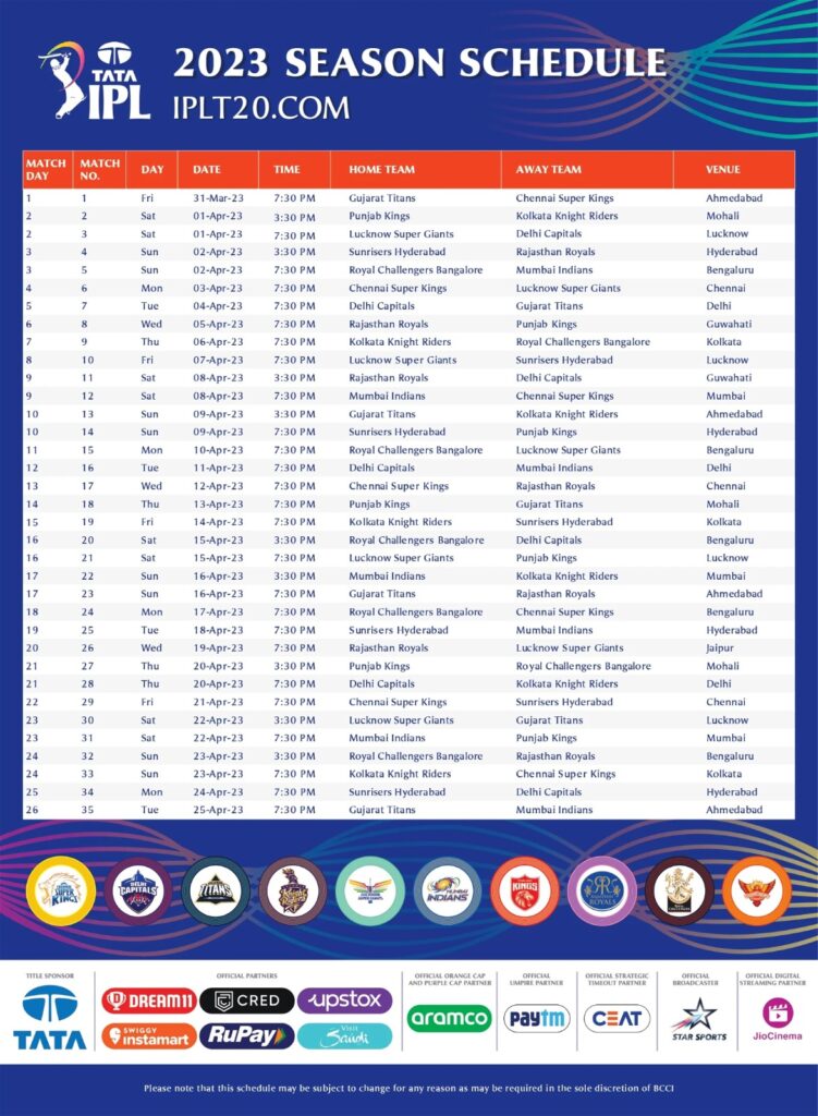 IPL 2023 : ಮಾ.31 ರಿಂದ ಇಂಡಿಯನ್‌ ಪ್ರೀಮಿಯರ್‌ ಲೀಗ್‌ ಟೂರ್ನಿ ; ಕಂಪ್ಲೀಟ್‌ ಡಿಟೇಲ್ಸ್‌ ಇಲ್ಲಿದೆ..