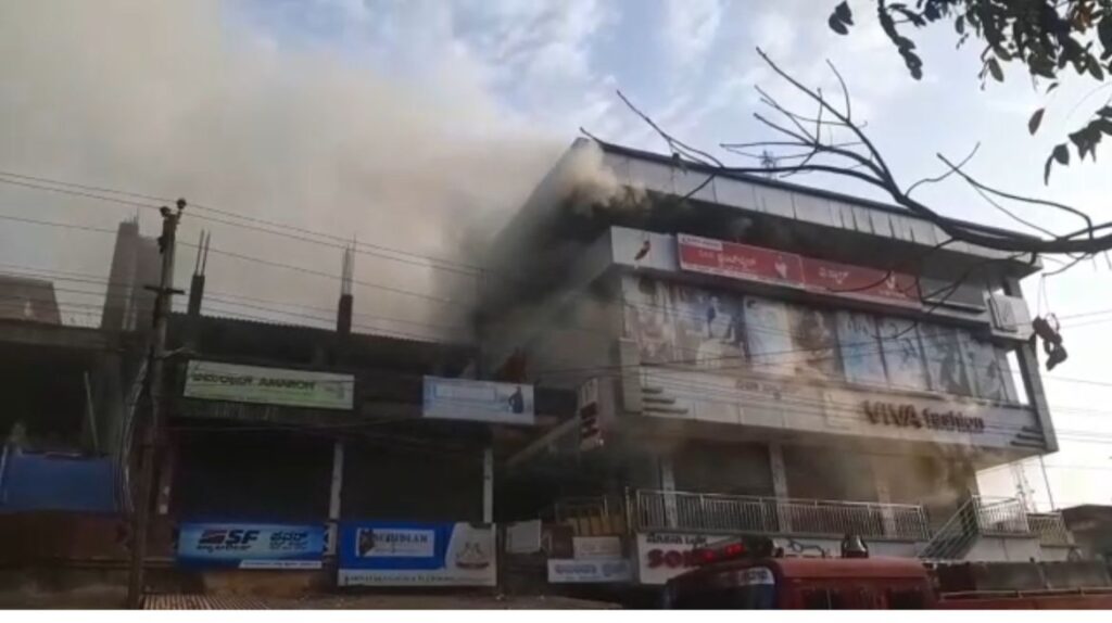 ಬಟ್ಟೆ ಮಳಿಗೆಯಾದ ವಿವಾ ಫ್ಯಾಶನ್ ಗೆ ಬೆಂಕಿ ಬಿದ್ದಿದ್ದು, ಮಳಿಗೆ ಹೊತ್ತಿ ಉರಿಯುತ್ತಿದೆ.
