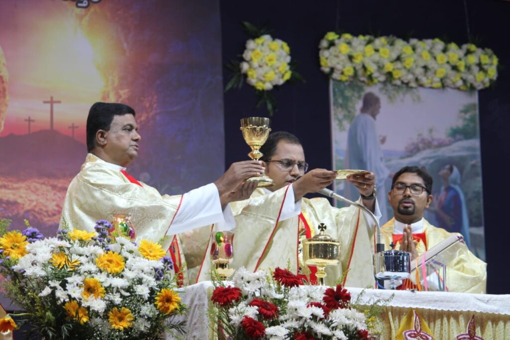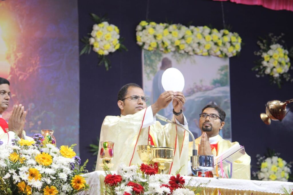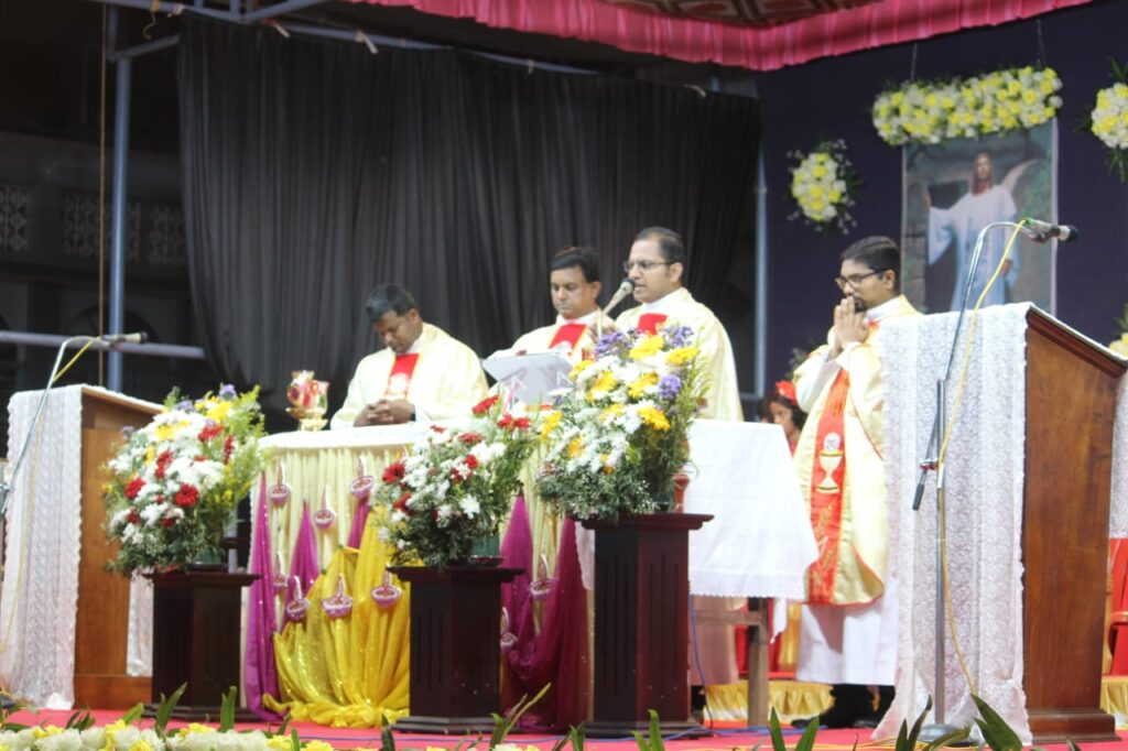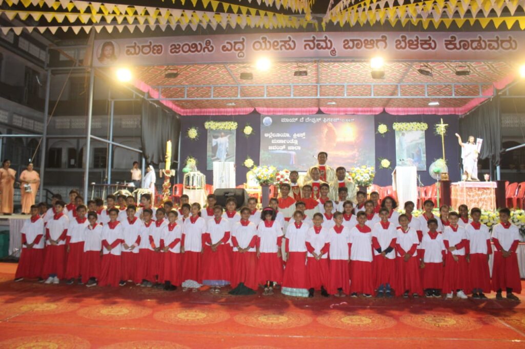 ತದನಂತರ ದೊಡ್ಡ ಮೂರು ಪಾತ್ರೆಯಲ್ಲಿ ಇಟ್ಟಿರುವ ನೀರನ್ನು ಮೇಣದ ಬತ್ತಿಯನ್ನು ಮುಳುಗಿಸುವುದರ ಮುಖಾಂತರ ಆಶೀರ್ವದಿಸಿ ಮೇಣದಬತ್ತಿಯಿಂದ ಎಲ್ಲಾ ಭಕ್ತಾದಿಗಳು ಯೇಸು ಕ್ರಿಸ್ತರು ನಮಗೆ ನೀಡಿರುವ ಪುನರುತ್ಥಾನವನ್ನು ವಿಶ್ವಾಸಿಸುತ್ತೇವೆ ಎನ್ನುವ ವಾಗ್ದಾನವನ್ನು ನವೀಕರಿಸಿದ ನಂತರ ಪವಿತ್ರ ನೀರನ್ನು ಸಿಂಪಡಿಸಿ ಪಾವನರಾಗುತ್ತಾರೆ. ಬಲಿ ಪೂಜೆಯಲ್ಲಿ ಲಾರೆನ್ಸ್ ಮಸ್ಕರೇನಸ್, ಕೆವಿನ್ ಲಾರೆನ್ಸ್ ಡಿಸೋಜಾ ವಂದನೀಯ ಅಶೋಕ್ ರಾಯನ್ ಕ್ರಾಸ್ತಾರವರು ಉಪಸ್ಥಿತರಿದ್ದರು.