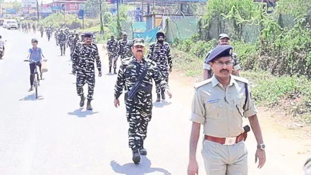 ಮಂಗಳೂರು: ವಿಧಾನಸಭೆ ಚುನಾವಣೆ ಹಿನ್ನೆಲೆಯಲ್ಲಿ ರವಿವಾರದಂದು ಸಿಆರ್ಪಿಎಫ್, ಕೆಎಸ್ಆರ್ಪಿ ಮತ್ತು ಸ್ಥಳೀಯ ಪೊಲೀಸರು ಪಥಸಂಚಲನ ನಡೆಸಿದರು.