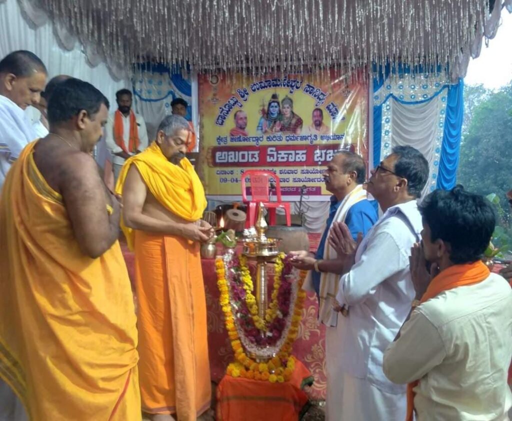ಶ್ರೀಧಾಮ ಮಾಣಿಲದ ಮೋಹನದಾಸ ಪರಮಹಂಸ ಸ್ವಾಮೀಜಿಯವರು ದೀಪ ಪ್ರಜ್ವಲನಗೊಳಿಸುವ ಮೂಲಕ ಈ ಅಖಂಡ ಏಕಾಹ ಭಜನಾ ಕಾರ್ಯಕ್ರಮಕ್ಕೆ ವಿಧ್ಯುಕ್ತವಾಗಿ ಚಾಲನೆ ನೀಡಿದರು.
