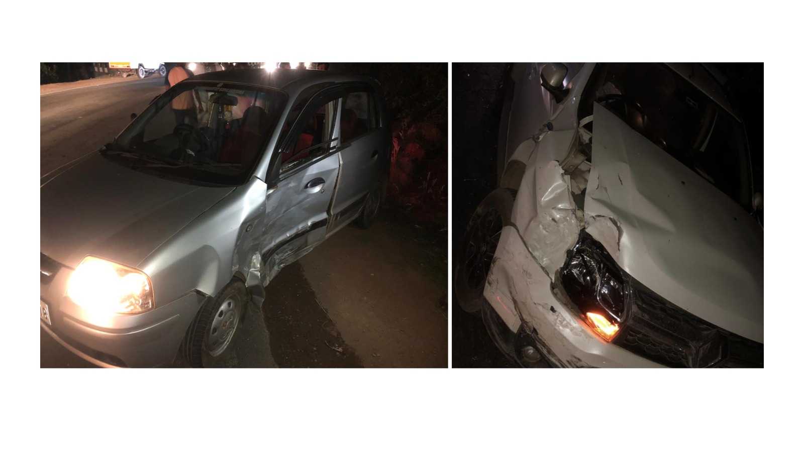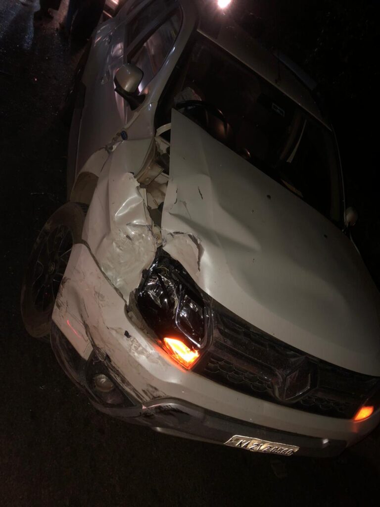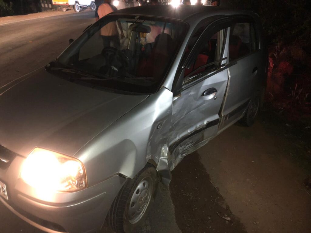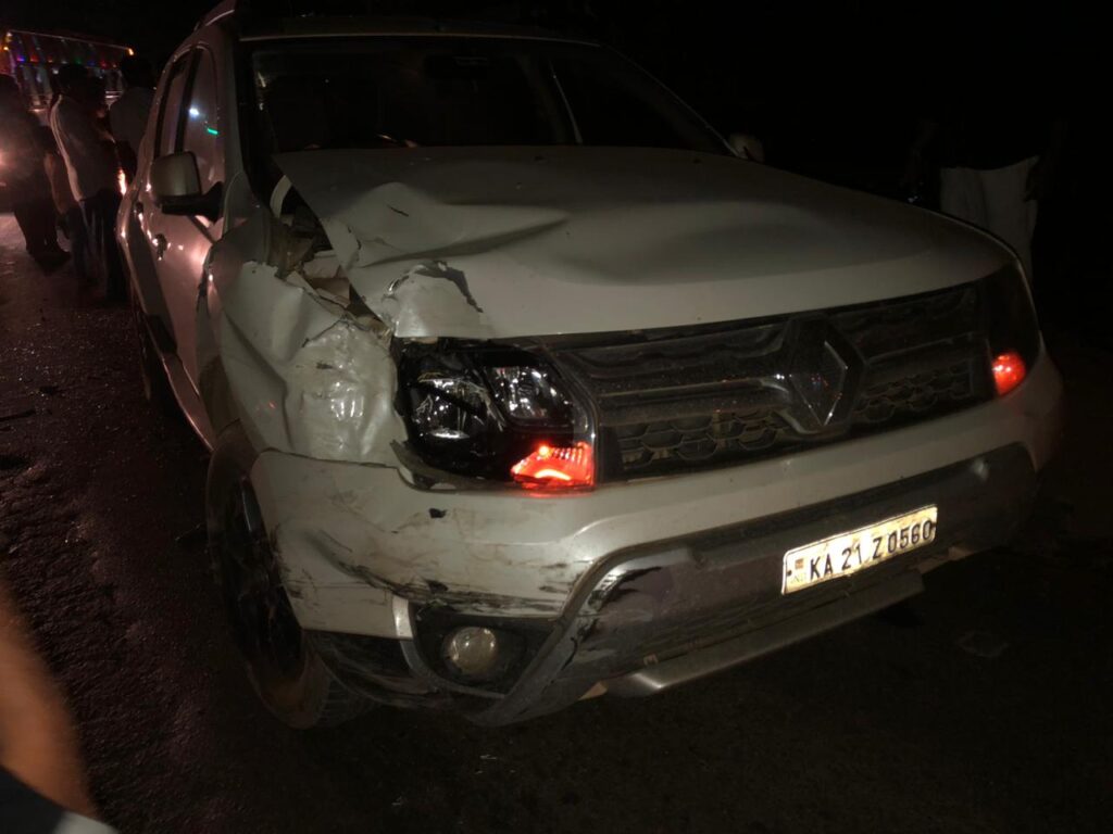 ಡಸ್ಟರ್ ಕಾರು ಮತ್ತು ಸ್ಯಾಂಟ್ರೋ ಕಾರಿನ ನಡುವೆ ಡಿಕ್ಕಿ ಸಂಭವಿಸಿದೆ.