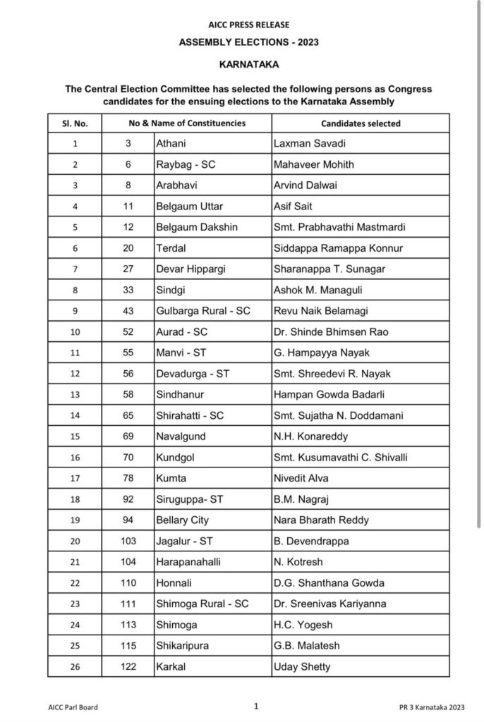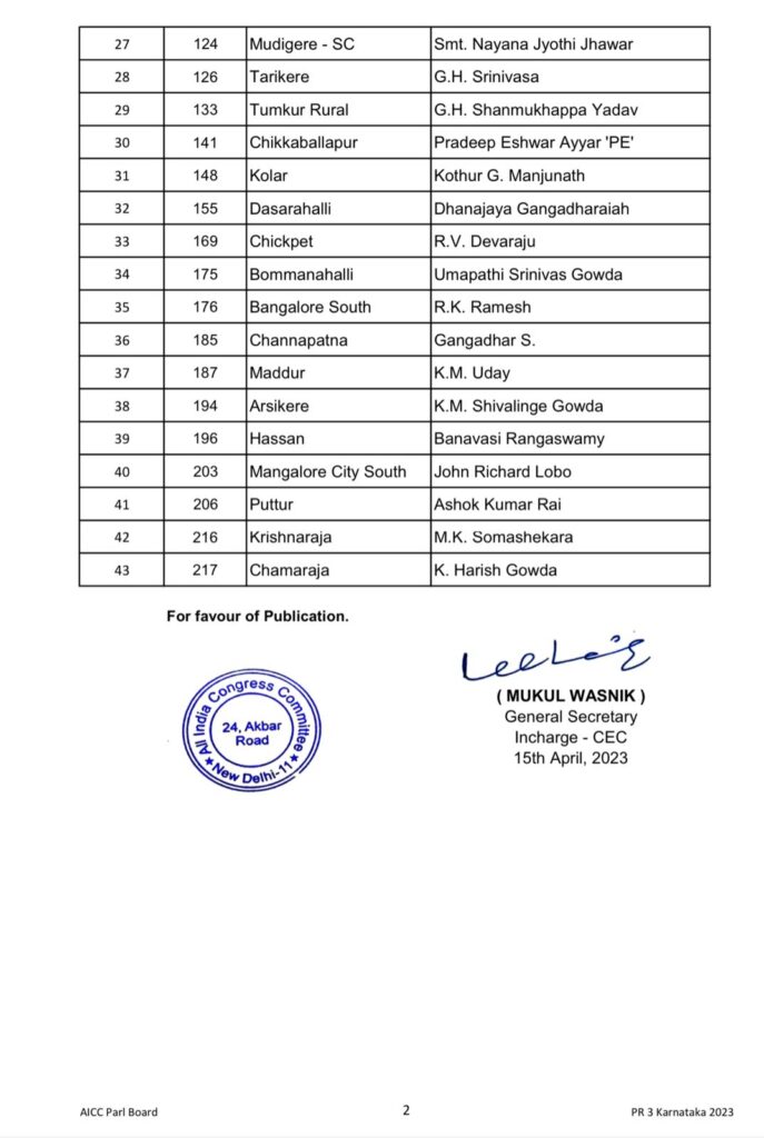 ಮೂರನೇ ಪಟ್ಟಿ ಇಂತಿದೆ