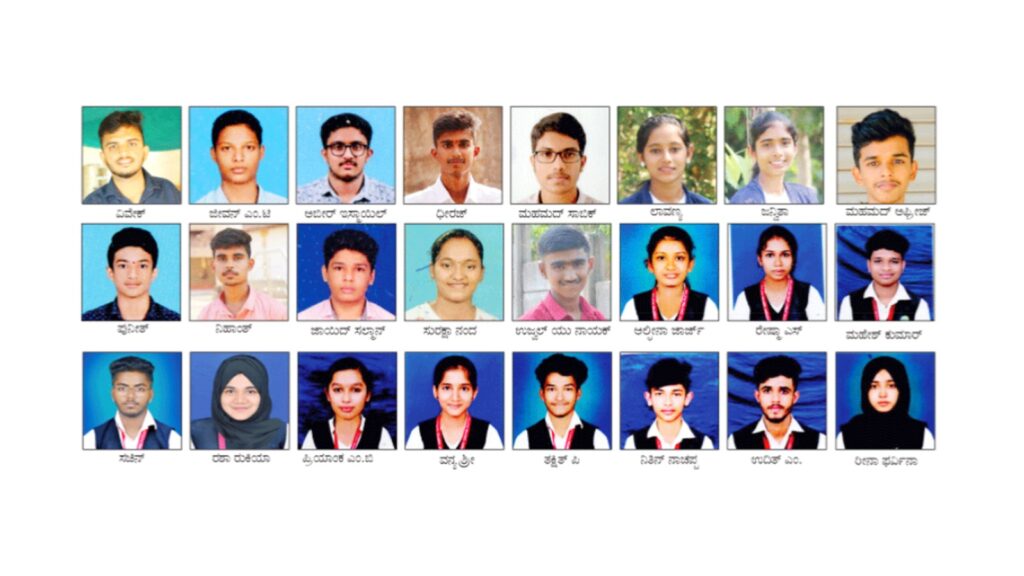 ವಿಜ್ಞಾನ ವಿಭಾಗ : ವಿವೇಕ್ ಎಂ-539, ಜೀವನ್ ಎಂ.ಟಿ-525, ಅಬೀರ್ ಇಸ್ಮಾಯಿಲ್- 506, ದೀರಜ್- 504, ಮಹಮದ್ ಸಾಬಿಕ್-494, ಲಾವಣ್ಯ-491, ಜನ್ವಿತಾ-482, ಮಹಮದ್ ಅಫ್ರೀಜ್-471, ಪುನೀತ್-452 ಅಂಕ ಪಡೆದಿದ್ದಾರೆ.