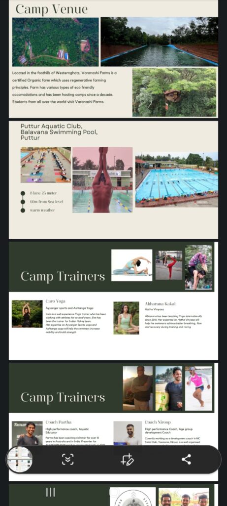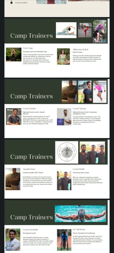 ಎಕ್ಸ್ ಸಿ ಸ್ವಿಮ್ಮಿಂಗ್ ಕ್ಲಬ್ ಆಸ್ಟ್ರೇಲಿಯಾ ಟಾಸ್ಮೇನಿಯಾದಲ್ಲಿ ತರಬೇತಿದಾರರಾಗಿ ಕಾರ್ಯ ನಿರ್ವಹಿಸುತ್ತಿರುವ ನಿರೂಪ್ ಜಿ.ಆರ್. ರವರು ಹಾಗೆಯೇ ಅಂತರ್ರಾಷ್ಟ್ರೀಯ ಈಜು ತರಬೇತುದಾರ ಪಾರ್ಥ ವಾರಣಾಶಿ, ರೋಹಿತ್, ಆಭರಣ, ಸಾಯಿಕಿರಣ್ ರವರು ತರಬೇತಿ ನೀಡುತ್ತಿದ್ದಾರೆ.
