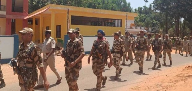 ಮಂಗಳೂರು: ವಿಧಾನ ಸಭೆ ಚುನಾವಣೆ ಹಿನ್ನೆಲೆಯಲ್ಲಿ ದಕ್ಷಿಣ ಕನ್ನಡ ಜಿಲ್ಲೆಯ ಗಡಿ ಪ್ರದೇಶಗಳು ಸೇರಿದಂತೆ ಸೂಕ್ಷ್ಮ ಪ್ರದೇಶಗಳಲ್ಲಿ ಕೇಂದ್ರ ಅರೆಸೇನಾ ಪಡೆ ಮತ್ತು ಪೊಲೀಸರು ಪಥಸಂಚಲನ ನಡೆಸಿದರು.