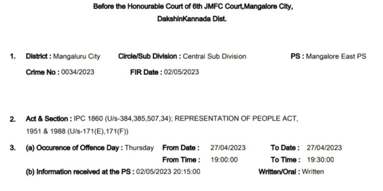 ಈ ಬಗ್ಗೆ ಐಪಿಸಿ 1860 (U/s-384,385,507,34); REPRESENTATION OF PEOPLE ACT,1951 & 1988 (U/s-171(E),171(F) ರಂತೆ ಪ್ರಕರಣ ದಾಖಲಾಗಿದೆ.