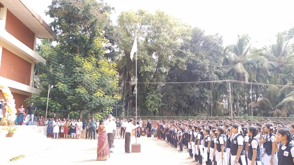 ಶಾಲಾ ಧ್ವಜಾರೋಹಣವನ್ನು ಸಂಸ್ಥೆಯ ಅಧ್ಯಕ್ಷರಾದ ಎಲ್ ಎನ್ ಕೂಡೂರು ರವರು ನೆರವೇರಿಸಿದರು. ಹಾಗೂ ಹೊಸದಾಗಿ ದಾಖಲಾದ ವಿದ್ಯಾರ್ಥಿಗಳನ್ನು ಉದ್ದೇಶಿಸಿ ಶಾಲೆಯಲ್ಲಿ ಅನುಭವಿ ಶಿಕ್ಷಕರ ತಂಡವು ಕಾರ್ಯನಿರ್ವಹಿಸುತ್ತಿದ್ದು ಮಕ್ಕಳು ಇಲ್ಲಿ ಸುಲಭವಾಗಿ ಜ್ಞಾನಾರ್ಜನೆಯಲ್ಲಿ ತೊಡಗಬಹುದು ಹಾಗೂ ವಿದ್ಯಾರ್ಥಿಗಳಿಗೆ ಸಿಕ್ಕ ಅವಕಾಶಗಳನ್ನು ಸದುಪಯೋಗ ಪಡಿಸುವಂತೆ ತಿಳಿಸಿ ಧೈರ್ಯ ತುಂಬಿದರು.