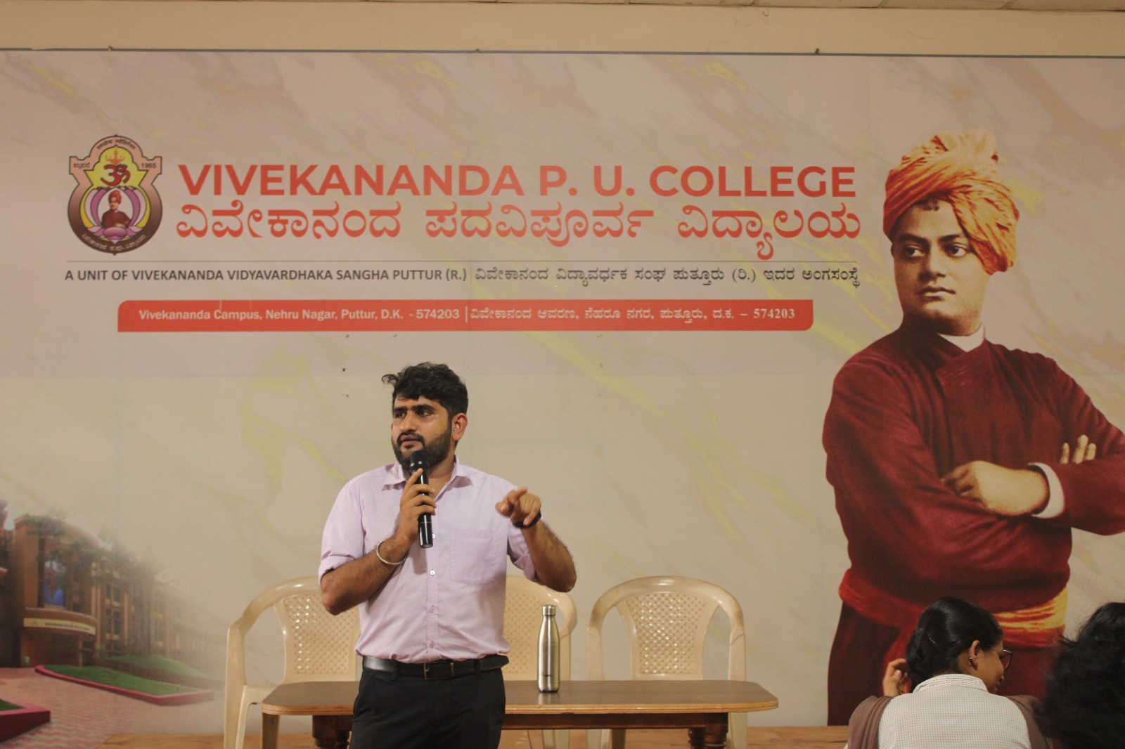 ವಿವೇಕಾನಂದ ಪದವಿ ಪೂರ್ವಕಾಲೇಜಿನಲ್ಲಿ ವಾಣಿಜ್ಯ ಮತ್ತು ಕಲಾ ವಿಭಾಗದ ವಿದ್ಯಾರ್ಥಿಗಳಿಗೆ ನಡೆದ ವ್ಯಕ್ತಿತ್ವ ವಿಕಸನ ತರಬೇತಿ ಕಾರ್ಯಕ್ರಮದಲ್ಲಿ ಮುಖ್ಯ ಅತಿಥಿಯಾಗಿ ಅವರು ಮಾತನಾಡಿದರು.