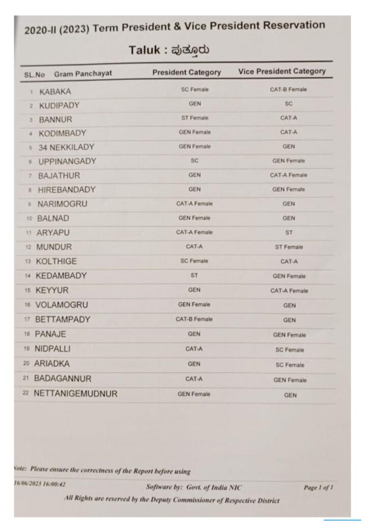 ಇಂದು (ಜೂ.16) ಪುತ್ತೂರಿನ 22 ಗ್ರಾಮ ಪಂಚಾಯತ್ ಗಳ ನೂತನ ಅಧ್ಯಕ್ಷ, ಉಪಾಧ್ಯಕ್ಷರ ಆಯ್ಕೆಗೆ ಮೀಸಲಾತಿ ನಿಗದಿ