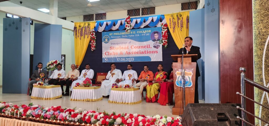 ಅವರು ಸಂತ ಫಿಲೋಮಿನಾ ಪದವಿ ಪೂರ್ವ ಕಾಲೇಜಿನ 2023-24ನೇ ಸಾಲಿನ ವಿದ್ಯಾರ್ಥಿ ಸಂಘವನ್ನು ಉದ್ಘಾಟಿಸಿ ಮಾತನಾಡಿದರು.