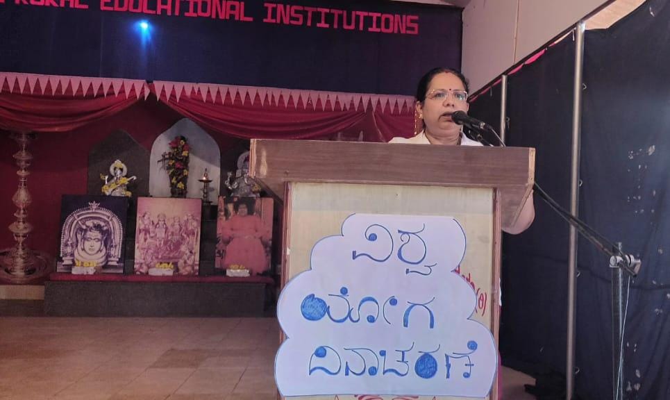ಸಂಸ್ಥೆಯ ಮುಖ್ಯೋಪಾಧ್ಯಾಯರಾದ ಜಯಮಾಲಾ ವಿ ಎನ್ ರವರು ದೈನಂದಿನ ಜೀವನದಲ್ಲಿ ಯೋಗದ ಮಹತ್ವದ ಬಗ್ಗೆ ತಿಳಿಸಿದರು.