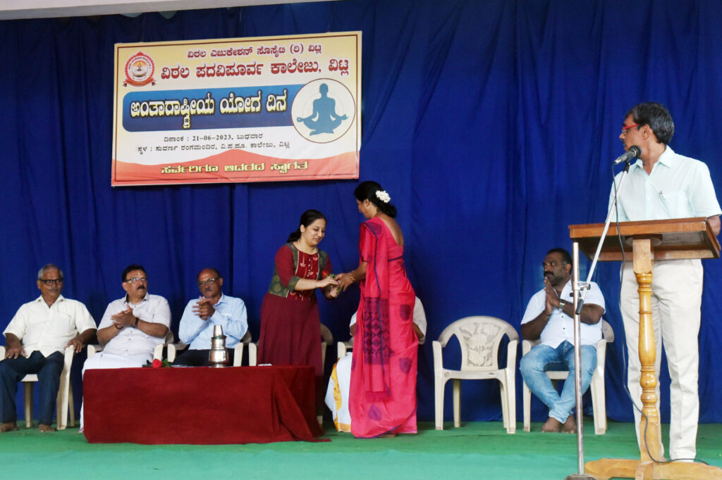 ಅವರು ವಿಠಲ ಪದವಿಪೂರ್ವ ಕಾಲೇಜಿನಲ್ಲಿ ನಡೆದ ಅಂತರಾಷ್ಟ್ರೀಯ ಯೋಗ ದಿನಾಚರಣೆ ಕಾರ್ಯಕ್ರಮವನ್ನು ಉದ್ಘಾಟಿಸಿ, ಸಂಪನ್ಮೂಲ ವ್ಯಕ್ತಿಯಾಗಿ ವಿದ್ಯಾರ್ಥಿಗಳಿಗೆ ಯೋಗ ತರಬೇತಿಯನ್ನು ನೀಡಿ ಮಾತನಾಡಿದರು.