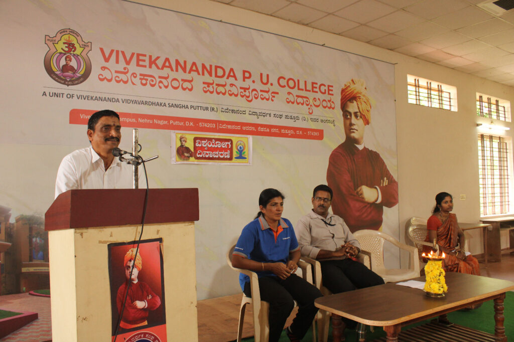 ಅವರು ವಿವೇಕಾನಂದ ಪದವಿ ಪೂರ್ವ ಕಾಲೇಜಿನಲ್ಲಿ ನಡೆದ ವಿಶ್ವಯೋಗ ದಿನಾಚರಣೆಯನ್ನು ಉದ್ಘಾಟಿಸಿ ಮಾತನಾಡುತ್ತಾ ಯೋಗದಿಂದ ಏಕಾಗ್ರತೆ ಹೆಚ್ಚುವುದಲ್ಲದೆ ನಮ್ಮ ಮಾನಸಿಕ ಮತ್ತು ದೈಹಿಕ ಕ್ಷಮತೆ ಅಭಿವೃದ್ಧಿಯಾಗುತ್ತದೆ. ಯೋಗಕ್ಕಿರುವ ಅಗಾಧ ಶಕ್ತಿ ಬೇರೊಂದಿಲ್ಲ, ಸಣ್ಣ ಕಾಲಾವಧಿಯಲ್ಲೂ ಯೋಗ ಮಾಡಿ ನೆಮ್ಮದಿ ಪಡೆಯಬಹುದು. ಪರಿಪೂರ್ಣ ಜೀವನಕ್ಕೆ ಯೋಗ ಅತ್ಯಗತ್ಯ. ಮಾನವ ಕುಲದ ಏಕತೆಯ ಪರಿಕಲ್ಪನೆಗೆ ಯೋಗ ಪ್ರಾಮುಖ್ಯವಾದುದು. ಯೋಗಜೀವನದ ಒಂದು ಭಾಗವೇ ಆಗಬೇಕು. ದೈನಂದಿನ ಜೀವನದಲ್ಲಿ ಅದನ್ನು ಅಳವಡಿಸಿಕೊಂಡು ನಮ್ಮ ಸಾಮರ್ಥ್ಯ ಹೆಚ್ಚಿಸುವ ಮೂಲಕ ಸಮಾಜಮುಖಿ ಕಾರ್ಯಕ್ಕೆ ಕೈ ಜೋಡಿಸಬೇಕು ಎಂದು ತಿಳಿಸಿದರು.