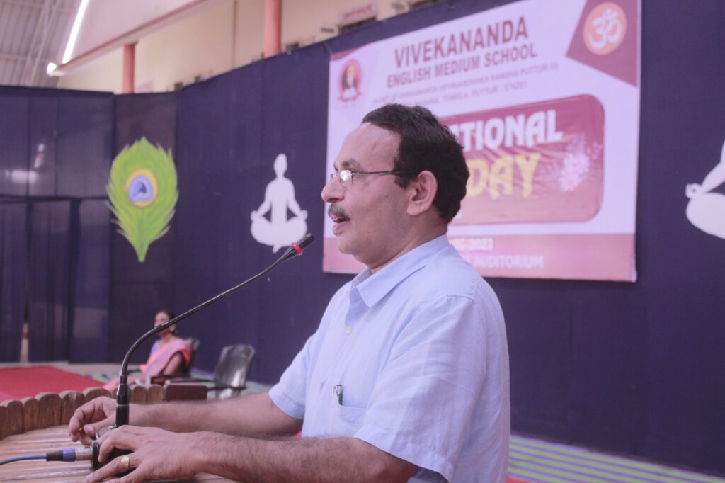 ಅವರು ವಿವೇಕಾನಂದ ಆಂಗ್ಲ ಮಾಧ್ಯಮ ಶಾಲೆಯಲ್ಲಿ 9ನೇ ವರ್ಷದ ಅಂತಾರಾಷ್ಟ್ರೀಯ ಯೋಗ ದಿನಾಚರಣೆಯ ಮಹತ್ವವನ್ನು ತಿಳಿಸಿ ಮಾತನಾಡಿದರು.