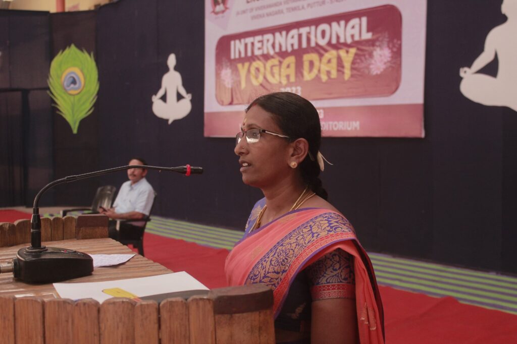 ಪುತ್ತೂರು : ಮನಸ್ಸಿನ ಭಾವನೆಗಳನ್ನು ನಿಯಂತ್ರಿಸಲು ಯೋಗ ಪೂರಕ ಎಂದು ವಿವೇಕಾನಂದ ಆಂಗ್ಲ ಮಾಧ್ಯಮ ಶಾಲೆಯ ಸಹ ಶಿಕ್ಷಕಿ ಶಿವಾನಿ ಹೇಳಿದರು.