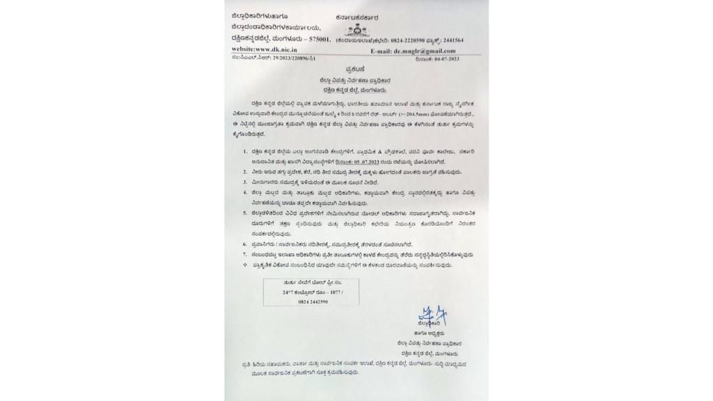 ಭಾರೀ ಮಳೆ ಹಿನ್ನೆಲೆ : ನಾಳೆ (ಜು.5) ದಕ್ಷಿಣ ಕನ್ನಡ ಜಿಲ್ಲಾ ಶಾಲಾ-ಕಾಲೇಜುಗಳಿಗೆ ರಜೆ ಘೋಷಣೆ