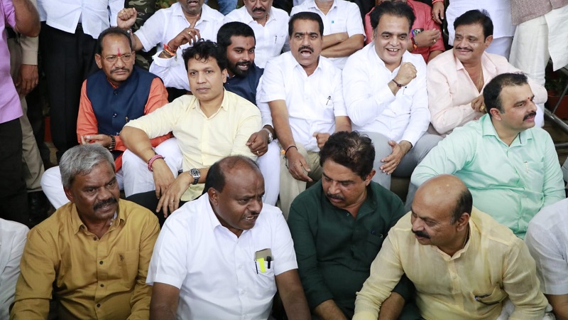 ಮೈತ್ರಿ ಸರ್ಕಾರದ ಮುಖ್ಯಮಂತ್ರಿಯಾಗಿ ಯಾವುದೇ ಶಿಷ್ಟಚಾರ ಉಲ್ಲಂಘನೆ ಮಾಡಿಲ್ಲ. ಅಧಿಕಾರಿಗಳನ್ನು ಗುಲಾಮರಾನ್ನಾಗಿ ಮಾಡಿಕೊಂಡು ಅಧಿಕಾರಿಗಳನ್ನು ಯಾರ ಮನೆ ಬಾಗಿಲುಗೂ ಕಳುಹಿಸಿಲ್ಲ. ಈ ಸರ್ಕಾರ ಸುಳ್ಳು ಹೇಳಿದೆ. ವಿರೋಧ ಪಕ್ಷಗಳ ಬಲ್ಡೋಜ್ ಮಾಡಲು ಹೊರಟಿರೋದು ಸರ್ಕಾರದ ಉದ್ಧಟತನ. ಪ್ರಜಾಪ್ರಭುತ್ವದ ಕಗ್ಗೊಲೆ ಮಾಡಿದೆ. ಬಿಜೆಪಿ ನಾವು ಸೇರಿ ಹೋರಾಟ ಮಾಡ್ತಾ ಇದ್ದೇವೆ ಎಂದು ಅವರು ಘೋಷಣೆ ಮಾಡಿದರು.