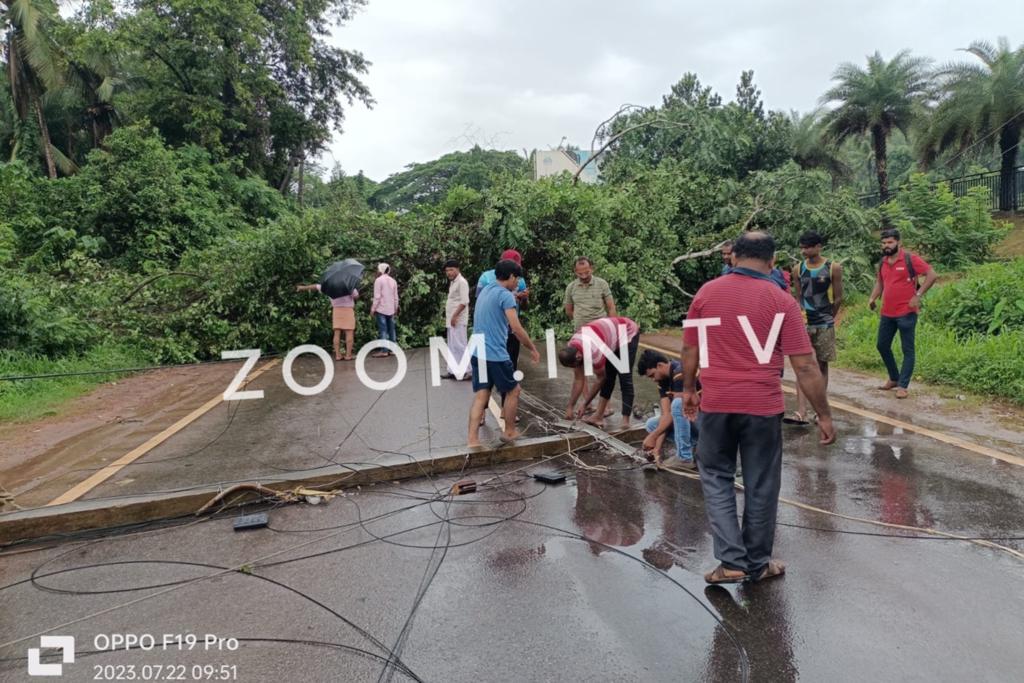 ಮರ ಬೀಳುವಾಗ ಅದರೊಂದಿಗೆ ವಿದ್ಯುತ್ ಕಂಬಗಳು, ತಂತಿ ನೆಲದ ಮೇಲೆ ಬಿದ್ದಿದೆ.