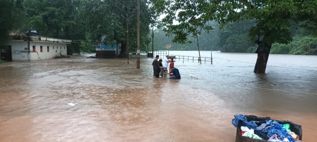ಸುಬ್ರಹ್ಮಣ್ಯ : ಸುಬ್ರಹ್ಮಣ್ಯ ಪರಿಸರದಲ್ಲಿ ಹಾಗೂ ಘಟ್ಟ ಪ್ರದೇಶದಲ್ಲಿ ಬಾರೀ ಮಳೆಯಾಗುತ್ತಿರುವುದರಿಂದ ಸುಬ್ರಹ್ಮಣ್ಯದ ಕುಮಾರಧಾರ ನದಿ ತುಂಬಿ ಹರಿಯುತ್ತಿದ್ದು, ಸುಬ್ರಹ್ಮಣ್ಯ ಸಮೀಪದ ಕುಮಾರಧಾರ ಸ್ನಾನಘಟ್ಟ ಶನಿವಾರ ಮುಳುಗಡೆಗೊಂಡಿದೆ.