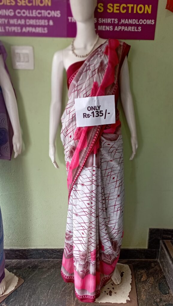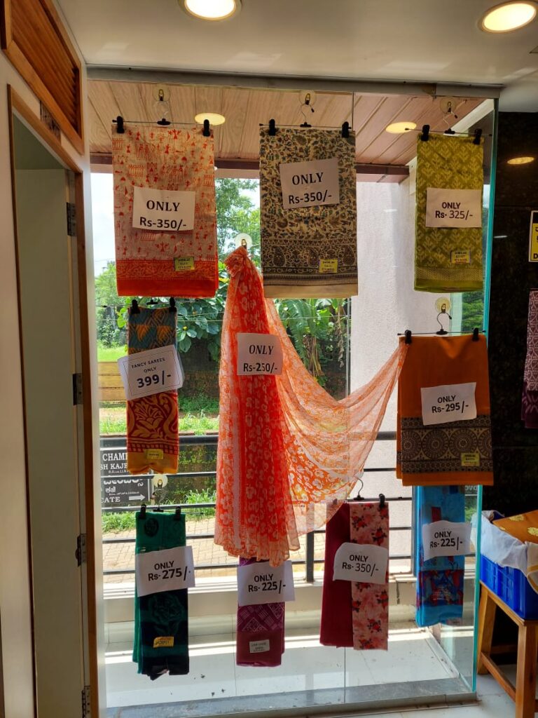 ಅತ್ಯುತ್ತಮ ಗುಣಮಟ್ಟದ ಬ್ರ್ಯಾಂಡೆಡ್ ವಸ್ತ್ರಗಳನ್ನು ರಿಯಾಯಿತಿ ದರದಲ್ಲಿ ಮಾರಾಟ ಮಾಡಲಾಗುತ್ತಿದ್ದು, ಆಕರ್ಷಕ ಬಣ್ಣದ, ವಿನ್ಯಾಸದ ಮದುವೆ ಇನ್ನಿತರ ಶುಭಸಮಾರಂಭ ಹಾಗೂ ದೈನಂದಿನ ವಸ್ತ್ರಗಳ ಅಪೂರ್ವ ಸಂಗ್ರಹವೇ ಇಲ್ಲಿದೆ. ಮನಸ್ಸಿಗೆ ಒಪ್ಪುವ ಮಕ್ಕಳ ಬಟ್ಟೆಗಳು, ಮಹಿಳೆಯರ, ಪುರುಷರ ಹೀಗೆ ಎಲ್ಲಾ ಪ್ರಾಯದ, ವರ್ಗದವರ ಬಟ್ಟೆಗಳ ಆಧುನಿಕ ಫ್ಯಾಷನ್ ವಸ್ತ್ರಗಳ ಅದ್ಭುತ ಲೋಕವೇ ಇಲ್ಲಿ ತೆರೆದುಕೊಂಡಿದೆ.