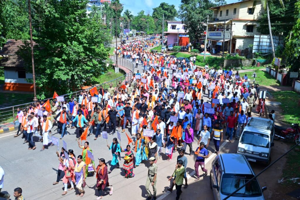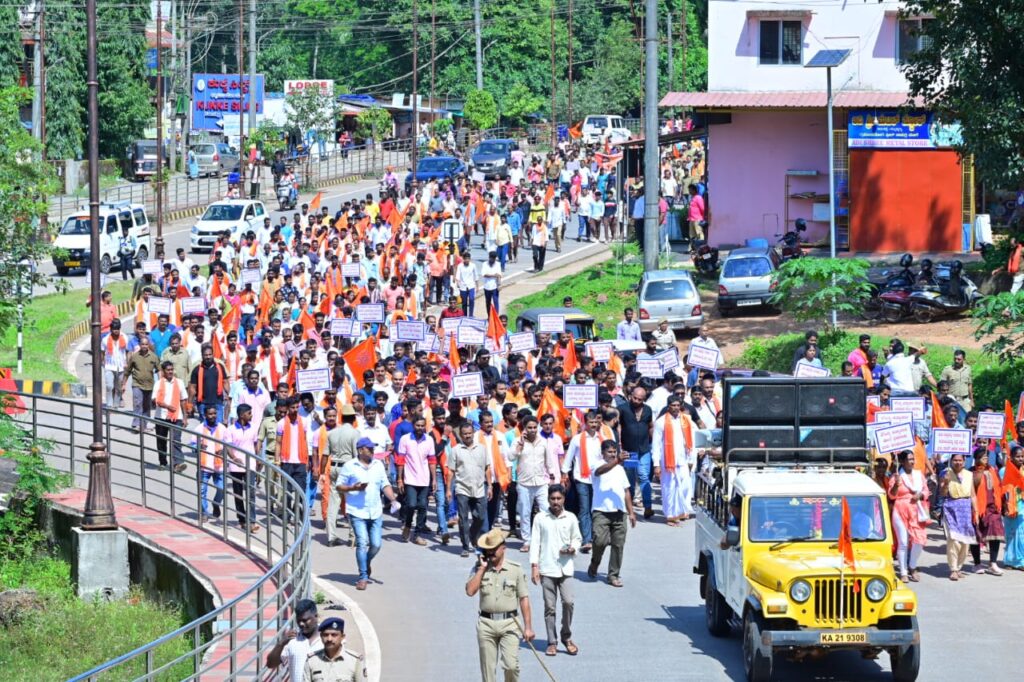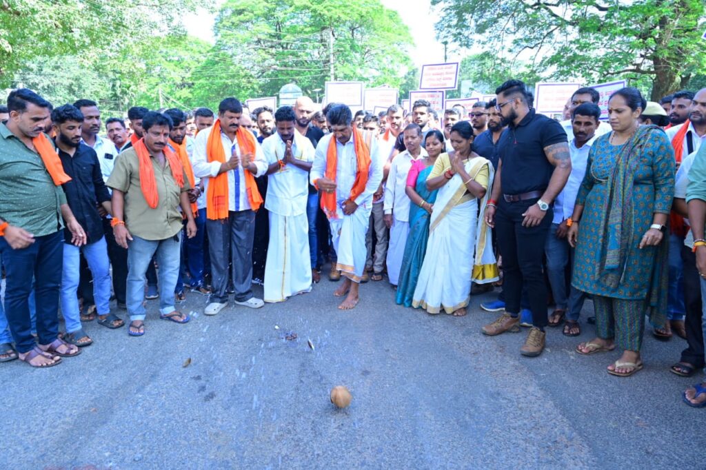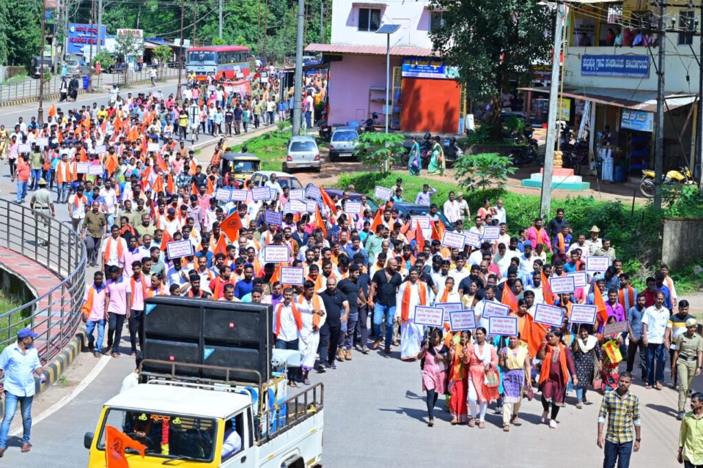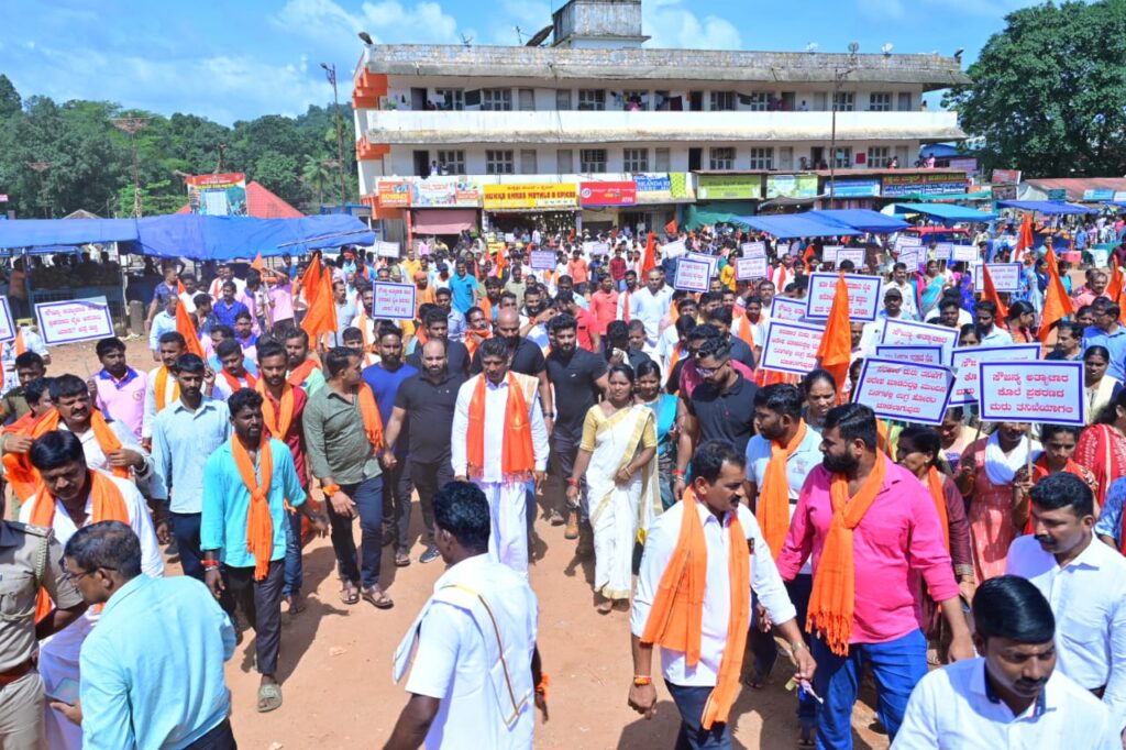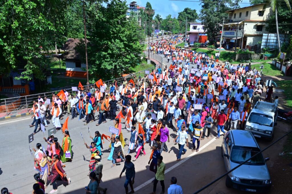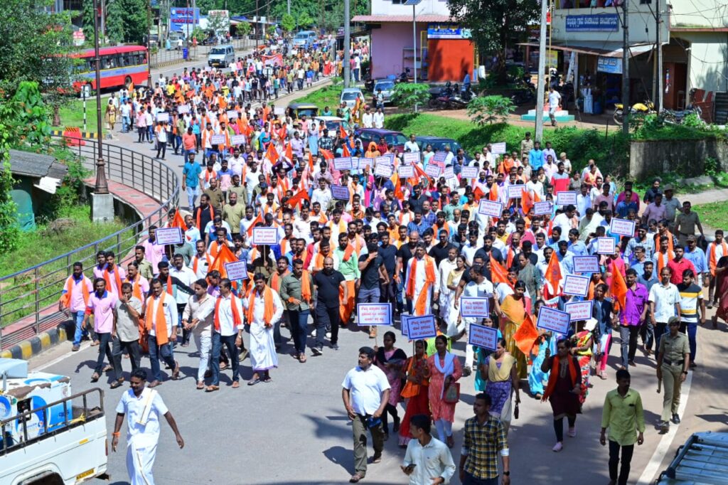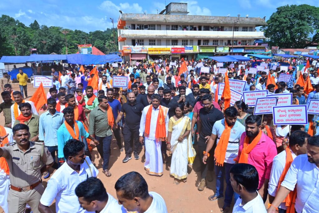 ಸುಬ್ರಹ್ಮಣ್ಯ : ಸೌಜನ್ಯ ಹತ್ಯೆ ಪ್ರಕರಣದ ನ್ಯಾಯಕ್ಕಾಗಿ ಹಾಗೂ ಮರು ತನಿಖೆಗೆ ಒತ್ತಾಯಿಸಿ ಇಂದು ಸುಬ್ರಹ್ಮಣ್ಯದಲ್ಲಿ ಪ್ರತಿಭಟನೆ ನಡೆದಿದ್ದು, ಕುಮಾರಧಾರ ಬಳಿಯಿಂದ ಮೆರವಣಿಗೆ ಆರಂಭಗೊಂಡಿತು. ತೆಂಗಿನಕಾಯಿ ಒಡೆದು ಕಾರ್ಯಕ್ರಮಕ್ಕೆ ಚಾಲನೆ ನೀಡಲಾಯಿತು.