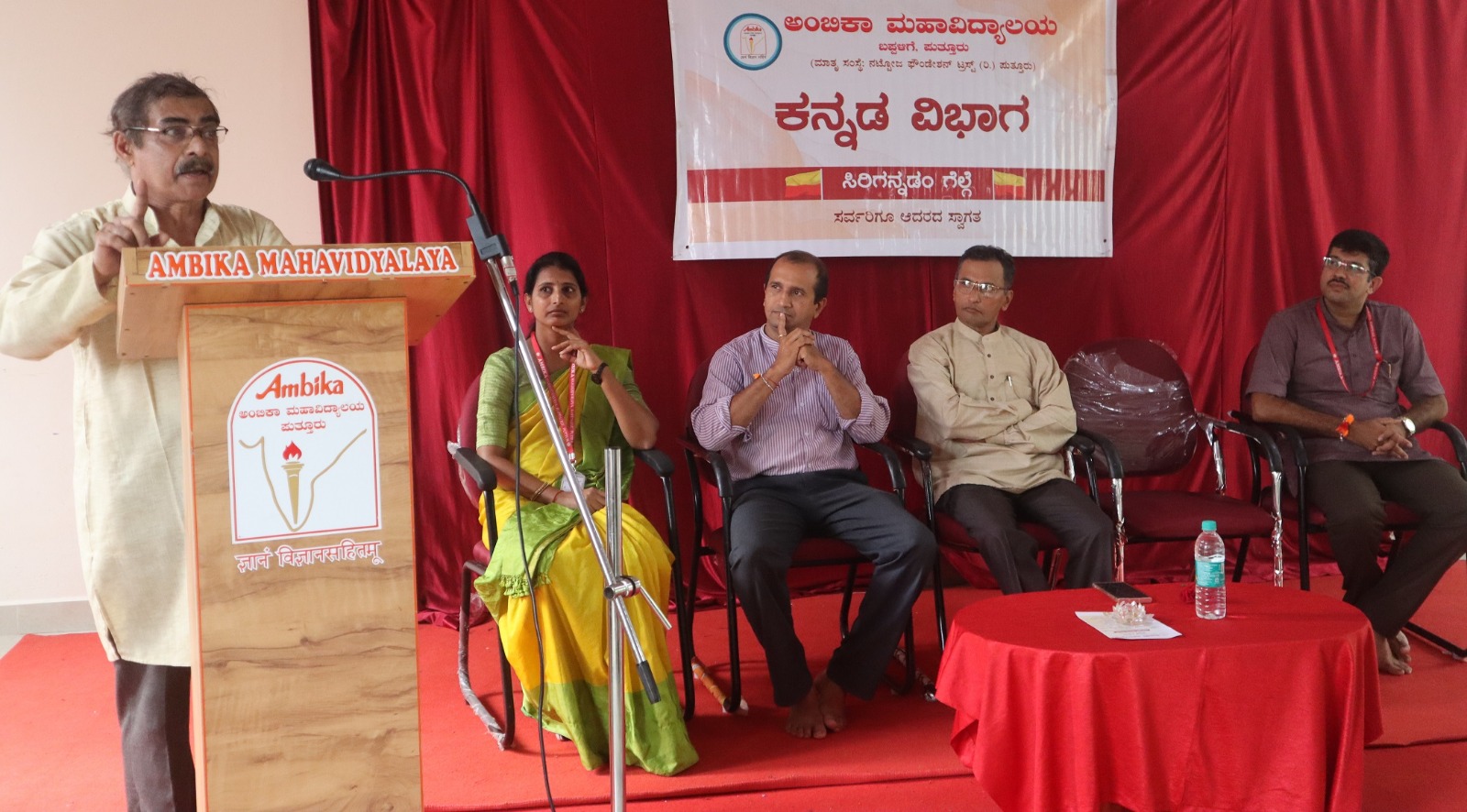 ಅಧ್ಯಕ್ಷತೆ ವಹಿಸಿದ್ದ ಅಂಬಿಕಾ ಸಮೂಹ ಶಿಕ್ಷಣ ಸಂಸ್ಥೆಗಳ ಕಾರ್ಯದರ್ಶಿ ಸುಬ್ರಹ್ಮಣ್ಯ ನಟ್ಟೋಜ ಮಾತನಾಡಿ ಕನ್ನಡವನ್ನು ಬೆಳೆಸುವ ಹೊಣೆಗಾರಿಕೆ ನಮ್ಮೆಲ್ಲರ ಮೇಲಿದೆ. ಇಂದು ಟಿವಿ ಮಾಧ್ಯಮಗಳ ಬಾಯಿಯಲ್ಲಿ ಕನ್ನಡ ವಿಕೃತಗೊಳ್ಳುತ್ತಿದೆ. ಅತ್ತ ಕನ್ನಡವೂ ಅಲ್ಲದ ಇತ್ತ ಇಂಗ್ಲೀಷೂ ಅಲ್ಲದ ಕಂಗ್ಲೀಷ್ ಭಾಷೆ ಮಾಧ್ಯಮದ ಮೂಲಕ ಪ್ರಸಾರಗೊಳ್ಳುತ್ತಿದೆ. ಹೀಗಿರುವಾಗ ಕನ್ನಡ ಭಾಷೆ ಬೆಳೆಯುವುದಾದರೂ ಹೇಗೆ ಎಂದು ಪ್ರಶ್ನಿಸಿದರಲ್ಲದೆ ಸಾಧ್ಯವಾದಷ್ಟೂ ಕನ್ನಡ ಕೀ ಪ್ಯಾಡ್‌ಗಳನ್ನು ಮೊಬೈಲ್‌ಗಳಿಗೆ ಅಳವಡಿಸಿ ಕನ್ನಡದಲ್ಲಿಯೇ ಸಂದೇಶ ಕಳುಹಿಸಲು ತೊಡಗಬೇಕು ಎಂದು ಹೇಳಿದರು.