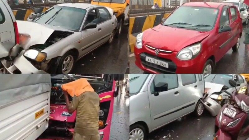 ಲಾರಿಗೆ ಕಾರು ಡಿಕ್ಕಿಯಾಗಿದ್ದೇ ತಡ ಒಂದರ ಹಿಂದೆ ಇನ್ನೊಂದರಂತೆ ಕಾರಿಗೆ ಹಿಂಬದಿಯಿಂದ ಕಾರು, ಕಾಂಟೆಸ್ಸಾ, ಪಿಕಪ್, ಖಾಸಗಿ ಬಸ್ ಡಿಕ್ಕಿಯಾಗಿವೆ.