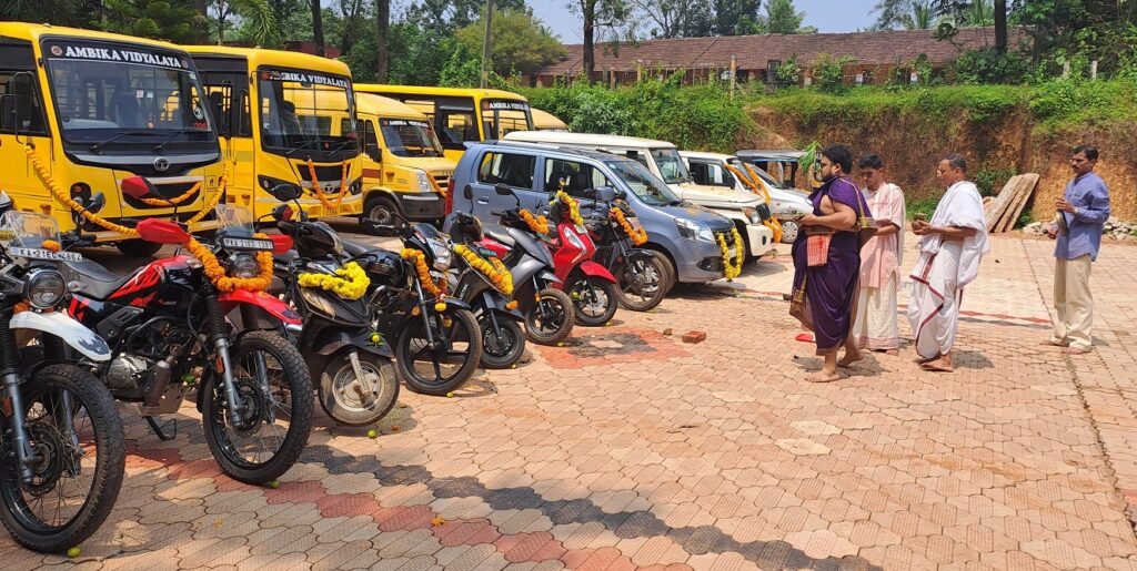 ಪುತ್ತೂರು : ನಗರದ ನಟ್ಟೋಜ ಫೌಂಡೇಶನ್ ಟ್ರಸ್ಟ್ ಮುನ್ನಡೆಸುತ್ತಿರುವ ಬಪ್ಪಳಿಗೆಯಲ್ಲಿನ ಅಂಬಿಕಾ ಸಮೂಹ ಶಿಕ್ಷಣ ಸಂಸ್ಥೆಗಳ ಆವರಣದಲ್ಲಿನ ಶ್ರೀ ಶಂಕರ ಸಭಾಭವನದಲ್ಲಿ ಶುಕ್ರವಾರ ಶ್ರೀ ಶಾರದಾ ಪೂಜೆ, ಅಕ್ಷರಾಭ್ಯಾಸ ಹಾಗೂ ಆಯುಧಪೂಜೆ ಪ್ರಯುಕ್ತ ವಾಹನ ಪೂಜೆ ಕಾರ್ಯಕ್ರಮ ಶಾಸ್ತ್ರೋಕ್ತವಾಗಿ ನಡೆಯಿತು.