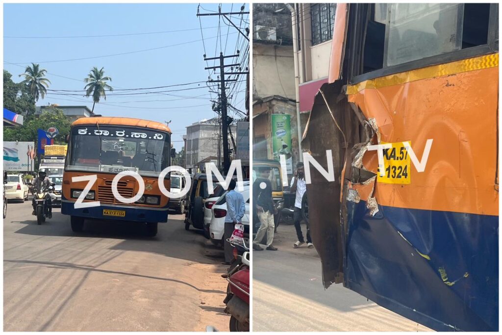 ಘಟನೆಯಲ್ಲಿ ಬಸ್ ನ ಹಿಂಭಾಗಕ್ಕೆ ಹಾನಿಯಾಗಿದೆ.