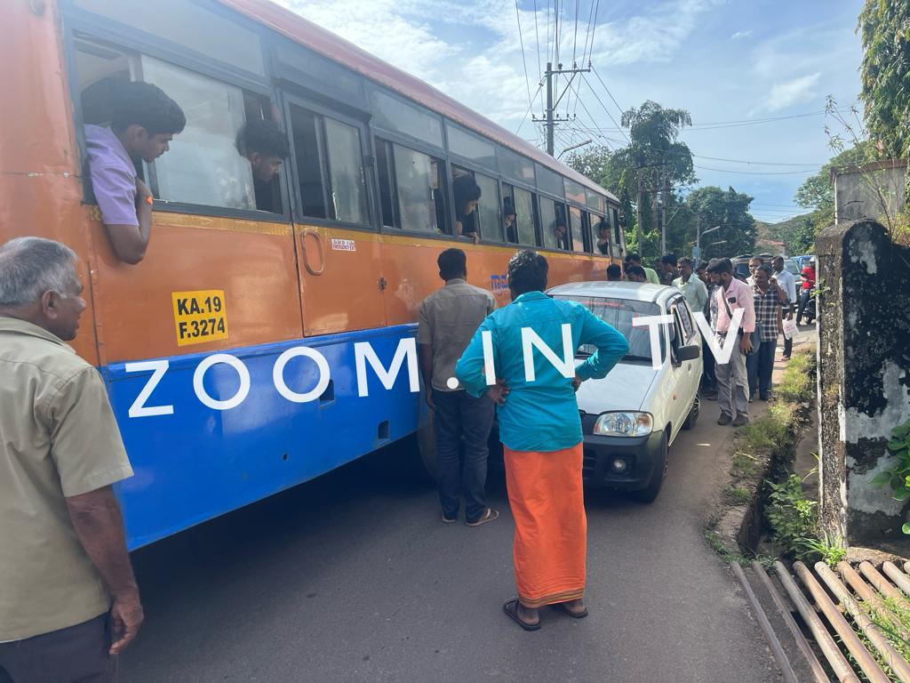 ಪುತ್ತೂರು : ಕೆ.ಎಸ್.ಆರ್.ಟಿ.ಸಿ ಬಸ್ ಮತ್ತು ಕಾರಿನ ನಡುವೆ ಡಿಕ್ಕಿ ಸಂಭವಿಸಿದ ಘಟನೆ ಮಹಾಮ್ಮಾಯಿ ದೇವಸ್ಥಾನ ಸಮೀಪದ ಎಲ್.ಐ.ಸಿ ಆಫೀಸ್ ಬಳಿ ನಡೆದಿದೆ.