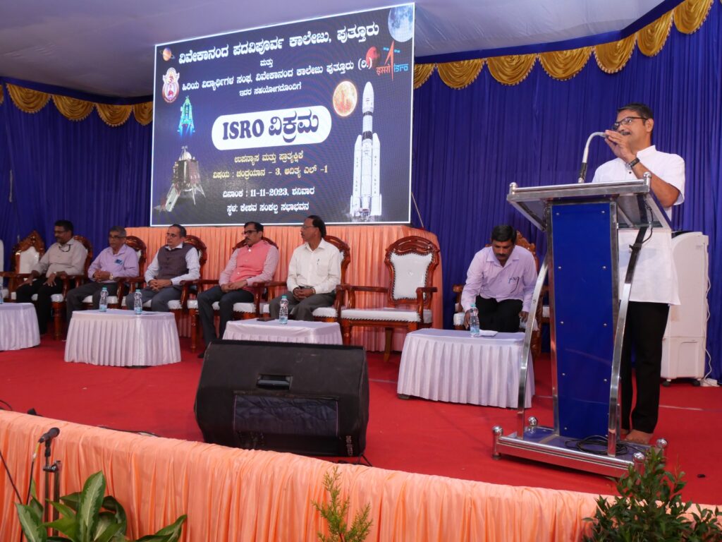 ಪುತ್ತೂರಿನ ವಿವೇಕಾನಂದ ಪದವಿ ಪೂರ್ವ ಕಾಲೇಜು ಹಾಗೂ ಹಿರಿಯ ವಿದ್ಯಾರ್ಥಿಗಳ ಸಂಘದ ಸಹಯೋಗದಲ್ಲಿ ನಡೆದ ಇಸ್ರೋ ವಿಕ್ರಮ ಕಾರ್ಯಕ್ರಮದಲ್ಲಿ ಸಂಪನ್ಮೂಲ ವ್ಯಕ್ತಿಯಾಗಿ ಮಾತನಾಡಿದರು.