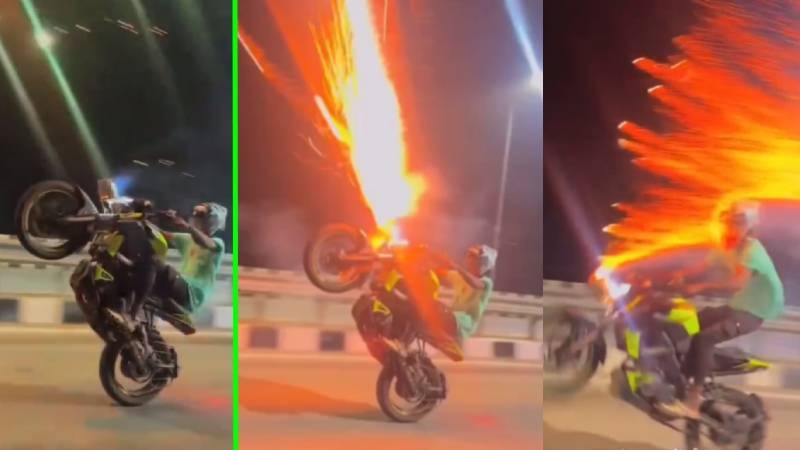 ಪಟಾಕಿ ಸಿಡಿಯುವಾಗಲೇ ಅಪಾಯದಿಂದ ಪಾರಾದ ಈ ಯುವಕ ಅಷ್ಟಕ್ಕೆ ಸುಮ್ಮನಾಗಿಲ್ಲ. ಈ ಬೈಕ್ ಸ್ಟಂಟ್ ಸಾಹಸದ ವಿಡಿಯೋವನ್ನು ಡೆವಿಲ್ ರೈಡರ್ ಅನ್ನೋ ಇನ್ಸ್ಟಾಗ್ರಾಂ ಖಾತೆಯಲ್ಲಿ ಶೇರ್ ಮಾಡಿಕೊಂಡಿದ್ದಾರೆ. ಬೈಕ್ ಸ್ಟಂಟ್ನ ಈ ವಿಡಿಯೋ ನೋಡಿದವರು ಸೋಷಿಯಲ್ ಮೀಡಿಯಾದಲ್ಲಿ ವೈರಲ್ ಆಗುವಂತೆ ಮಾಡಿದ್ದಾರೆ.