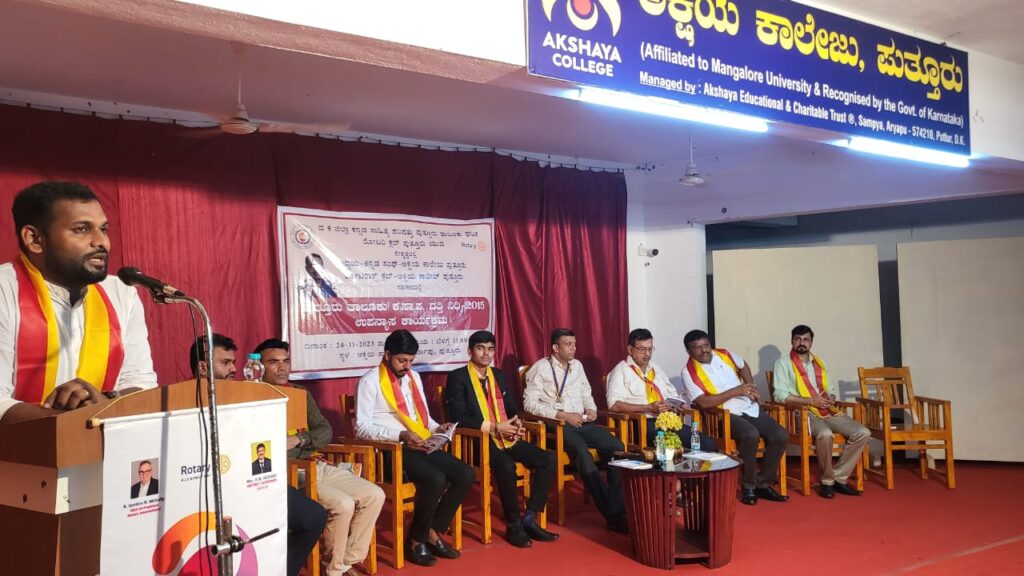 ಪುತ್ತೂರು : ದ.ಕ ಜಿಲ್ಲಾ ಕನ್ನಡ ಸಾಹಿತ್ಯ ಪರಿಷತ್ತು. ಪುತ್ತೂರು ತಾಲೂಕು , ಮತ್ತು ರೋಟರಿ ಕ್ಲಬ್ ಪುತ್ತೂರು ಯುವ ನೇತೃತ್ವದಲ್ಲಿ, ಅಕ್ಷಯ ಕಾಲೇಜಿನ ಅದ್ವಯ ಸಾಹಿತ್ಯ ಸಂಘ ಮತ್ತು ರೊಟ್ರ್ಯಾಕ್ಟ್ ಕ್ಲಬ್ – ಅಕ್ಷಯ ಕಾಲೇಜು ಪುತ್ತೂರು ಸಹಾಭಾಗಿತ್ವದಲ್ಲಿ “ಪುತ್ತೂರು ತಾಲೂಕು ಕನ್ನಡ ಸಾಹಿತ್ಯ ದತ್ತಿ ನಿಧಿ- 2015” ಉಪನ್ಯಾಸ ಕಾರ್ಯಕ್ರಮವು ಅಕ್ಷಯ ಕಾಲೇಜಿನಲ್ಲಿ ಸಂಪನ್ನಗೊಂಡಿತ್ತು.