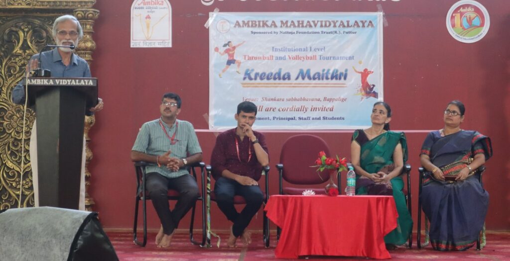 ಅವರು ನಗರದ ನಟ್ಟೋಜ ಫೌಂಡೇಶನ್ ಟ್ರಸ್ಟ್ ಮುನ್ನಡೆಸುತ್ತಿರುವ ಬಪ್ಪಳಿಗೆಯಲ್ಲಿನ ಅಂಬಿಕಾ ಮಹಾವಿದ್ಯಾಲಯದ ವಿದ್ಯಾರ್ಥಿ ಸಂಘದ ಆಶ್ರಯದಲ್ಲಿ ಅಂಬಿಕಾ ಸಮೂಹ ಶಿಕ್ಷಣ ಸಂಸ್ಥೆಗಳ ವಿದ್ಯಾರ್ಥಿಗಳಿಗಾಗಿ ಆಯೋಜಿಸಲಾದ ವಾಲಿಬಾಲ್ ಹಾಗೂ ಥ್ರೋಬಾಲ್ ಪಂದ್ಯಾಟ – ಕ್ರೀಡಾಮೈತ್ರಿ 2023 ಅನ್ನು ಉದ್ಘಾಟಿಸಿ ಮಾತನಾಡಿದರು.