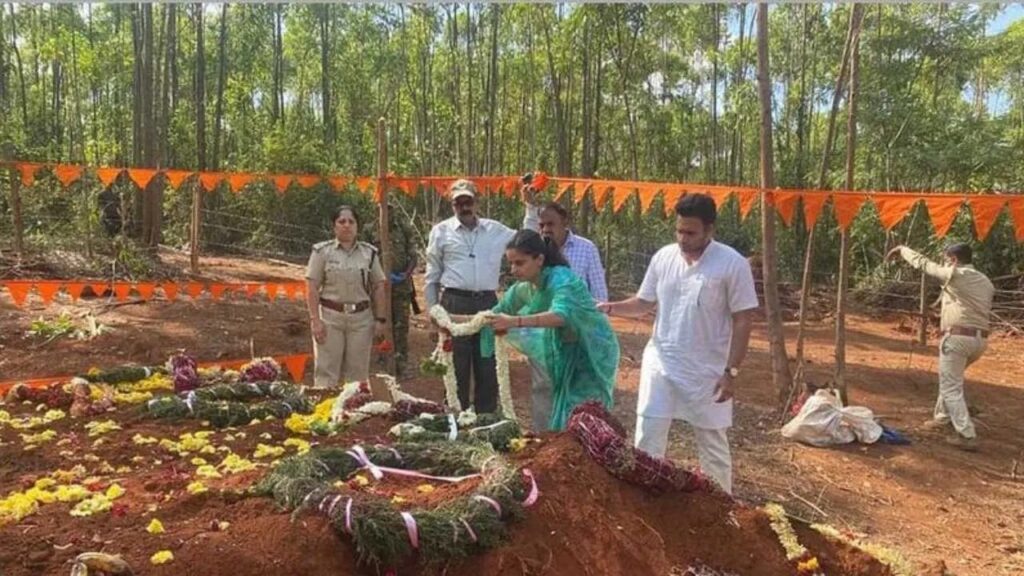 ಹಾಸನ ಜಿಲ್ಲೆಯ ಸಕಲೇಶಪುರ ತಾಲೂಕಿನ ದಬ್ಬಳ್ಳಿಕಟ್ಟೆ ನೆಡುತೋಪಿನಲ್ಲಿರುವ ಅರ್ಜುನನ ಸಮಾಧಿಗೆ ಭೇಟಿ ನೀಡಿದ ಯದುವೀರ್ ಕೃಷ್ಣದತ್ತ ಚಾಮರಾಜ ಒಡೆಯರ್​ ದಂಪತಿ ಪೂಜೆ ಸಲ್ಲಿಸಿದ್ದಾರೆ. ಅರ್ಜುನನ ಅಂತ್ಯಕ್ರಿಯೆಯಲ್ಲಿ ಭಾಗಿಯಾಗದ ಹಿನ್ನೆಲೆ ದಂಪತಿ ಸಮೇತರಾಗಿ ಆಗಮಿಸಿ ಅಂತಿಮ ನಮನ ಸಲ್ಲಿಸಿದ್ದಾರೆ.