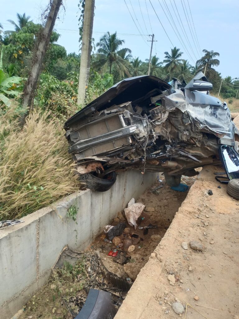 ಘಟನೆಯಿಂದ ಕಾರು ಜಖಂಗೊಂಡಿದ್ದು, ಅದೃಷ್ಟವಶಾತ್ ಕಾರಿನೊಳಗೆ ಪ್ರಯಾಣಿಸುತ್ತಿದ್ದ ಪ್ರಯಾಣಿಕರು ಅಲ್ಪಸ್ವಲ್ಪ ಗಾಯಗಳಿಂದ ಪಾರಾಗಿದ್ದಾರೆ.