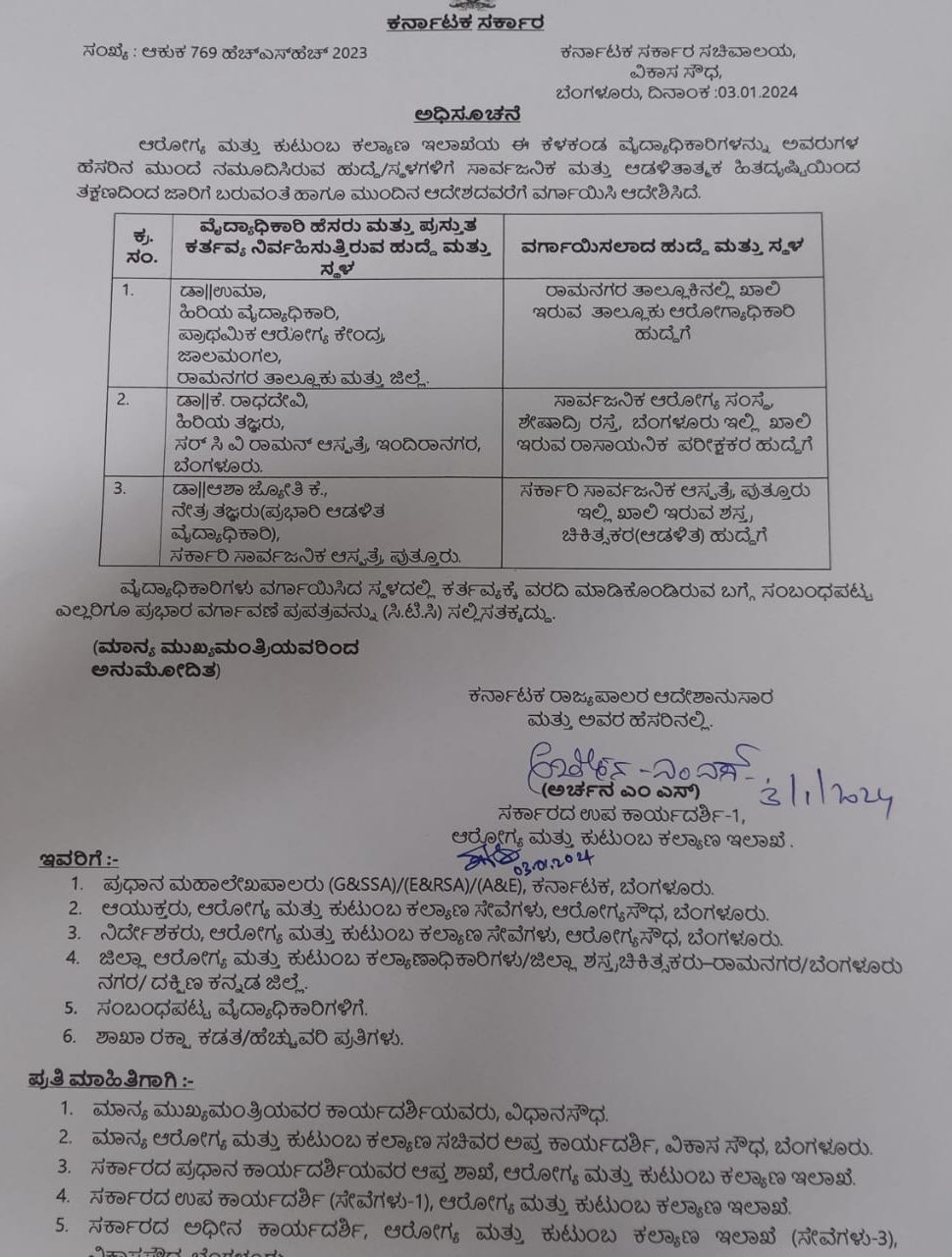 ಸರಕಾರದ ಉಪ ಕಾರ್ಯದರ್ಶಿ, ಆರೋಗ್ಯ ಮತ್ತು ಕುಟುಂಬ ಕಲ್ಯಾಣ ಇಲಾಖೆಯ ಅರ್ಚನ ಎಂ.ಎಸ್ ರವರು ನೇಮಕಗೊಳಿಸಿ ಅಧಿಕೃತ ಪ್ರಕಟಣೆ ಹೊರಡಿಸಿದ್ದಾರೆ.