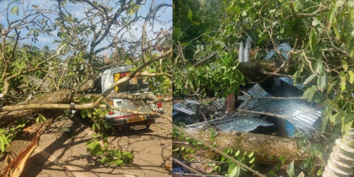 ಸುಬ್ರಹ್ಮಣ್ಯದಿಂದ ನೆಟ್ಟಣ ಕಡೆಗೆ ತೆರಳುತ್ತಿದ್ದ ಟಾಟಾ ಸುಮೋ ಹಾಗೂ ಕೈಕಂಬ ಜಂಕ್ಷನ್ ನಲ್ಲಿದ್ದ ಗೂಡಂಗಡಿಯ ಮೇಲೆ ಬೃಹತ್ ಗಾತ್ರದ ಮರ ಬಿದ್ದಿದ್ದು, ಘಟನೆಯಲ್ಲಿ ವಾಹನ ಚಾಲಕ ಬಿಳಿನೆಲೆ ನಿವಾಸಿ ಶೇಖರ್ ಹಾಗೂ ಮತ್ತೋರ್ವರು ಗಾಯಗೊಂಡಿದ್ದಾರೆ ಎಂದು ವರದಿಯಾಗಿದೆ.