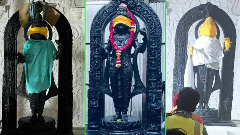 500 ವರ್ಷದ ಬಳಿಕ ಅಂತಿಮವಾಗಿ ರಾಮಜನ್ಮಭೂಮಿಯಲ್ಲೇ ರಾಮನ ಮೂರ್ತಿ ಪ್ರತಿಷ್ಠಾಪನೆಯಾಗಿದೆ. ಗರ್ಭಗುಡಿಯ ಮಾರ್ಬಲ್ ಮೇಲೆ ರಾಮಲಲ್ಲಾ ಪ್ರತಿಷ್ಠಾಪನೆ ಪೂರ್ಣವಾಗಿದ್ದು, ರಾಮಲಲ್ಲಾ ಮೂರ್ತಿಯ ಕಣ್ಣಿಗೆ ಸದ್ಯ ಬಟ್ಟೆ ಕಟ್ಟಲಾಗಿದೆ.