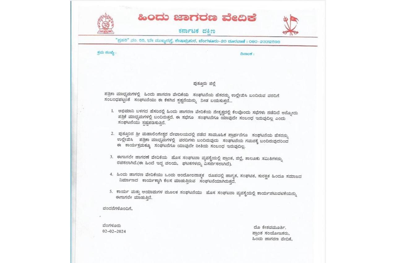 ಅಭಿಮಾನಿ ಬಳಗದ ಹೆಸರಿನಲ್ಲಿ ಹಿಂದೂ ಜಾಗರಣ ವೇದಿಕೆಯ ನೇತೃತ್ವದಲ್ಲಿ ಕೆಲವೊಂದು ಸಭೆಗಳು ನಡೆದಿದೆ ಅನ್ನೋದು ಪತ್ರಿಕೆ-ಮಾಧ್ಯಮಗಳಲ್ಲಿ ಬಂದಿರುತ್ತದೆ. ಈ ಸಭೆಗೂ ಸಂಘಟನೆಗೂ ಯಾವುದೇ ಸಂಬಂಧ ಇರುವುದಿಲ್ಲ ಎಂದು ಸಂಘಟನೆಯು ಸ್ಪಷ್ಟಪಡಿಸುತ್ತಿದೆ. ಮತ್ತು ಪುತ್ತೂರಿನ ಶ್ರೀ ಮಹಾಲಿಂಗೇಶ್ವರ ದೇವಾಲಯದಲ್ಲಿ ನಡೆದ ಸಾಮೂಹಿಕ ಪ್ರಾರ್ಥನೆಗೂ ಸಂಘಟನೆಯ ಹೆಸರನ್ನು ಉಲ್ಲೇಖಿಸಿ ಪತ್ರಿಕಾ-ಮಾಧ್ಯಮಗಳಲ್ಲಿ ವರದಿಗಳು ಬಂದಿರುವುದು ಸಂಘಟನೆಯ ಗಮನಕ್ಕೆ ಬಂದಿರುವುದರಿಂದ ಈ ಕಾರ್ಯಕ್ರಮಕ್ಕೂ ಸಂಘಟನೆಗೂ ಯಾವುದೇ ರೀತಿಯ ಸಂಬಂಧ ಇರುವುದಿಲ್ಲ.