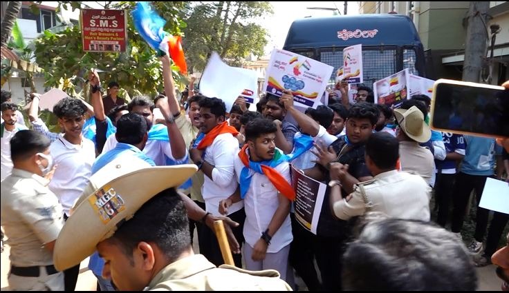 ತೆರಿಗೆ ಪಾಲು ವಿಚಾರ : ಸಂಸದ ನಳಿನ್ ಕುಮಾರ್ ಕಟೀಲ್ ನಿವಾಸಕ್ಕೆ ಎನ್.ಎಸ್.ಯು.ಐ ಮುತ್ತಿಗೆ ಯತ್ನ..!