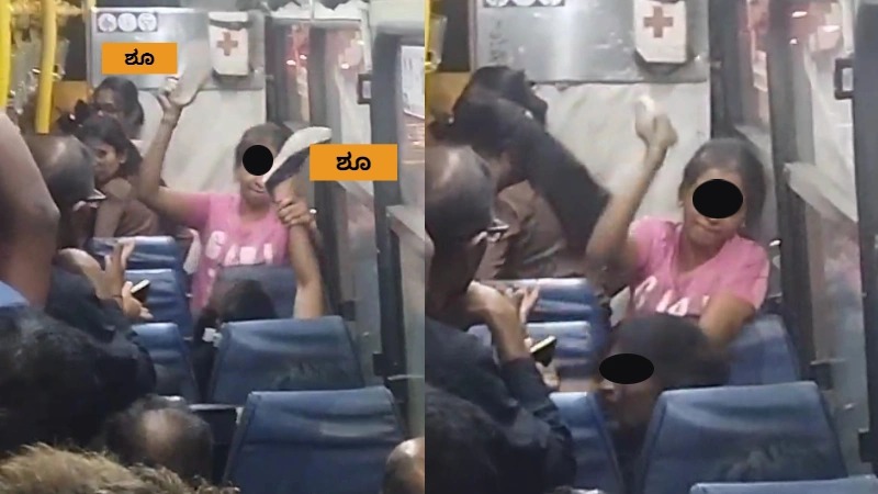 ಬಸ್‌ನಲ್ಲಿ ಚಪ್ಪಲಿ ಹಿಡಿದು ಮಹಿಳೆಯರ ಹೊಡೆದಾಟ : ಜಗಳಕ್ಕೆ ಬೇಸತ್ತು ತರಾಟೆಗೆ ತಗೊಂಡ ಸಹ ಪ್ರಯಾಣಿಕರು