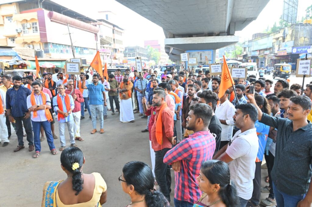 ಜಿಲ್ಲಾ ಸಂಚಾಲಕ ಭರತ್ ಕುಮ್ಡೆಲು ಮಾತನಾಡಿ, ಸರಕಾರದ ಹಿಂದೂ ವಿರೋಧಿ ಧೋರಣೆಯನ್ನು ಖಂಡಿಸಿದರು.