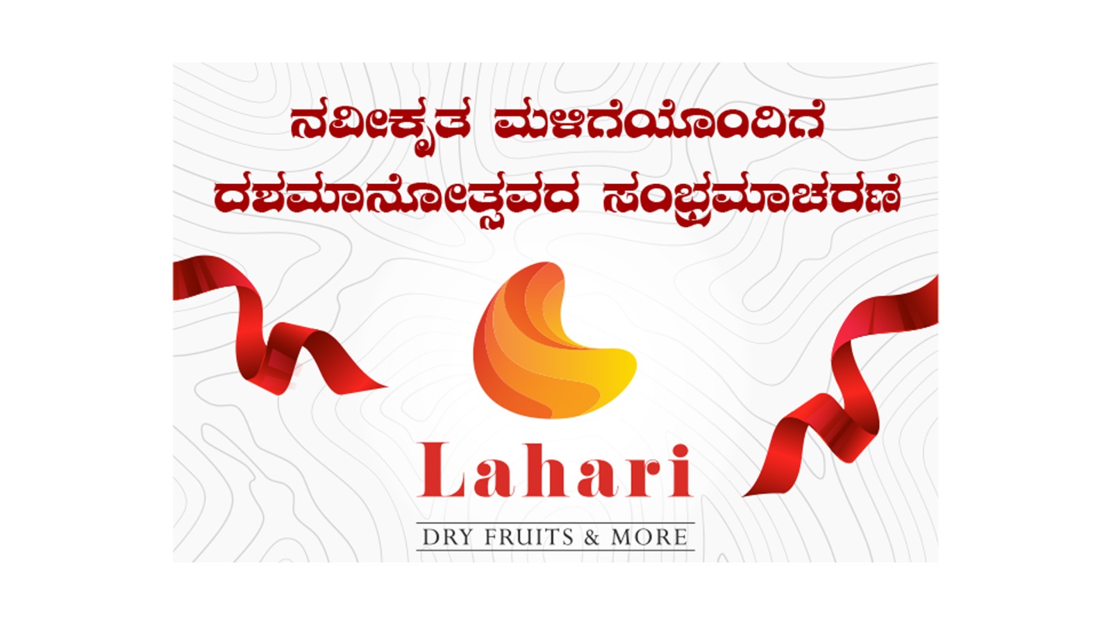 ಪುತ್ತೂರು : ದಶಮಾನೋತ್ಸವದ ಸಂಭ್ರಮದಲ್ಲಿರುವ ಖ್ಯಾತ ಮಳಿಗೆ ‘ಲಹರಿ’ ಡ್ರೈ ಫ್ರೂಟ್ಸ್ & ಮೋರ್ ನವೀಕೃತಗೊಂಡು ಮಾ.24 ರಂದು ಏಳ್ಮುಡಿ ಪೈ ಇಂಟರ್ನ್ಯಾಷನಲ್ ಬಳಿ ಶುಭಾರಂಭಗೊಳ್ಳಲಿದೆ.