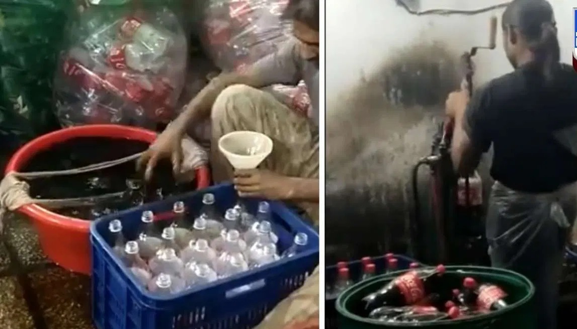 ಅತ್ಯಂತ ಕೊಳಕು ಪ್ರದೇಶದಲ್ಲಿ ಕೋಕಾ- ಕೋಲಾ ರೀತಿಯ ಪಾನೀಯವನ್ನೇ ಕೋಕಾ- ಕೋಲಾದ ಲೇಬಲ್​​ ಇರುವ ಬಾಟಲಿಯೊಳಗೆ ತುಂಬಿಸುತ್ತಿರುವುದು ವೀಡಿಯೋದಲ್ಲಿ ಸೆರೆಯಾಗಿದೆ.