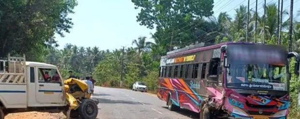 ವಿಟ್ಲ ಕಡೆಗೆ ಕಾಂಕ್ರೀಟ್ ಮಿಕ್ಸರ್ ಯಂತ್ರವನ್ನು ಒಯ್ಯುತ್ತಿದ್ದ ಪಿಕಪ್ ಆಕಸ್ಮಿಕವಾಗಿ ವಿಟ್ಲದಿಂದ ಮಂಗಳೂರಿಗೆ ಸಾಗುತ್ತಿದ್ದ ಖಾಸಗಿ ಬಸ್ಸಿಗೆ ಡಿಕ್ಕಿಯಾಗಿದೆ.