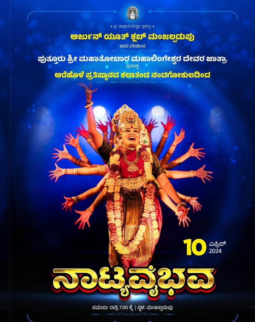 (ಏ.10) ಮಂಜಲ್ಪಡ್ಪು : ಅರ್ಜುನ್ ಯೂತ್ ಕ್ಲಬ್ ವತಿಯಿಂದ ಪುತ್ತೂರು ಜಾತ್ರೋತ್ಸವದ ಪ್ರಯುಕ್ತ ವಿಶೇಷ ಕಾರ್ಯಕ್ರಮ : ಅರೆಹೊಳೆ ಪ್ರತಿಷ್ಠಾನ ಕಲಾತಂಡದಿಂದ ‘ನಾಟ್ಯವೈಭವ’