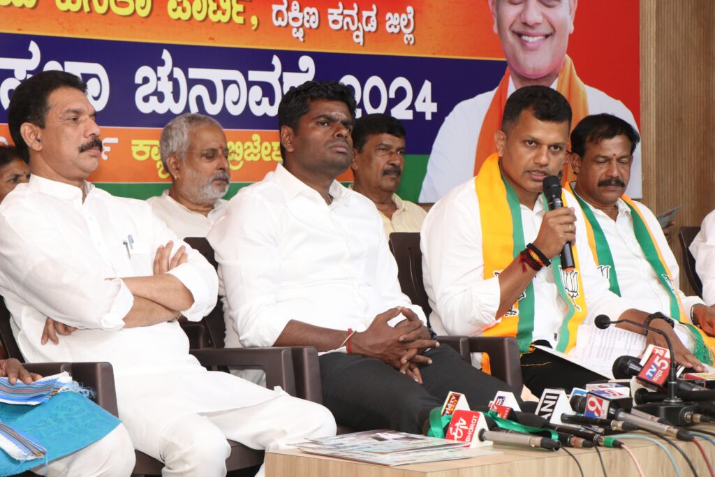 ನವಯುಗ ನವಪಥ ಎನ್ನುವ ಕಾರ್ಯಸೂಚಿಗಳ ಪಟ್ಟಿಯನ್ನು ತಮಿಳುನಾಡು ಬಿಜೆಪಿ ಘಟಕದ ಅಧ್ಯಕ್ಷ, ಮಾಜಿ ಐಪಿಎಸ್ ಅಧಿಕಾರಿ ಕೆ.ಅಣ್ಣಾಮಲೈ ಮಂಗಳೂರಿನ ಜಿಲ್ಲಾ ಬಿಜೆಪಿ ಕಚೇರಿಯಲ್ಲಿ ಬಿಡುಗಡೆ ಮಾಡಿದರು.